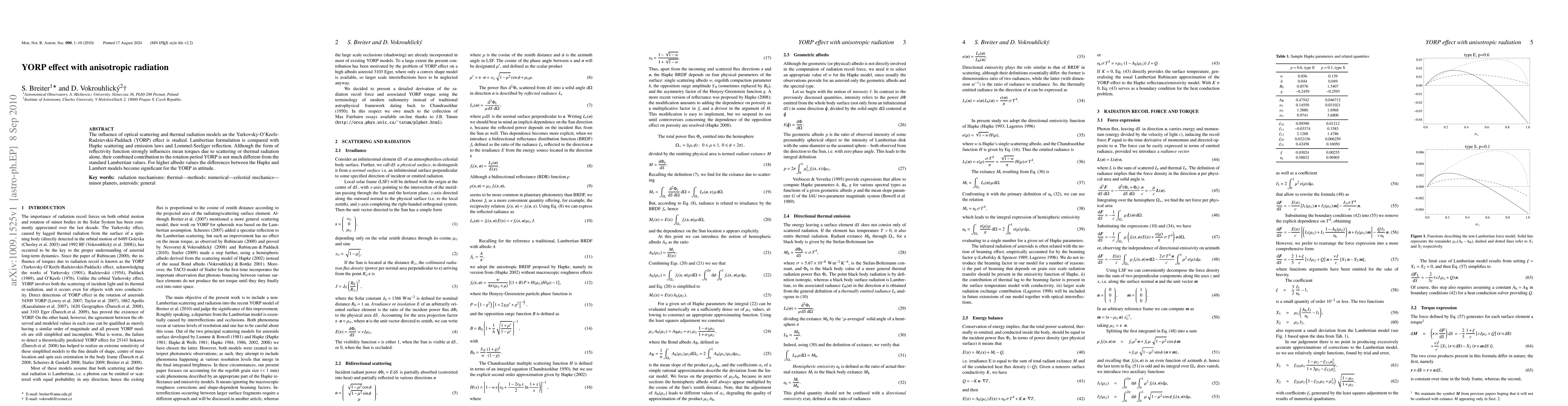 The influence of optical scattering and thermal radiation models an the Yarkovsky-O'Keefe-Radzievskii-Paddack (YORP) effect is studied. Lambertian formulation is compared with Hapke scattering and emission laws and Lommel-Seeliger reflection. Although the form of reflectivity function strongly influences mean torques due to scattering or thermal radiation alone, their combined contribution to the rotation period YORP is not much different from the standard Lambertian values. For higher albedo values the differences between the Hapke and Lambert models become significant for the YORP in attitude.