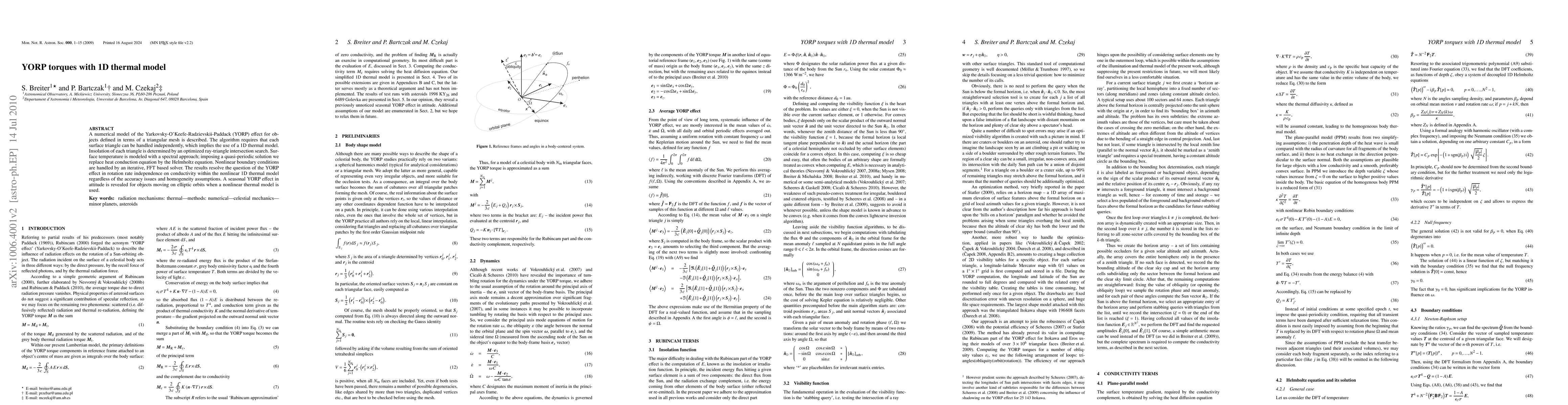 A new numerical model resolves the YORP effect in rotation rate independence on conductivity, revealing a seasonal variation in attitude for objects on elliptic orbits when using a nonlinear thermal model.