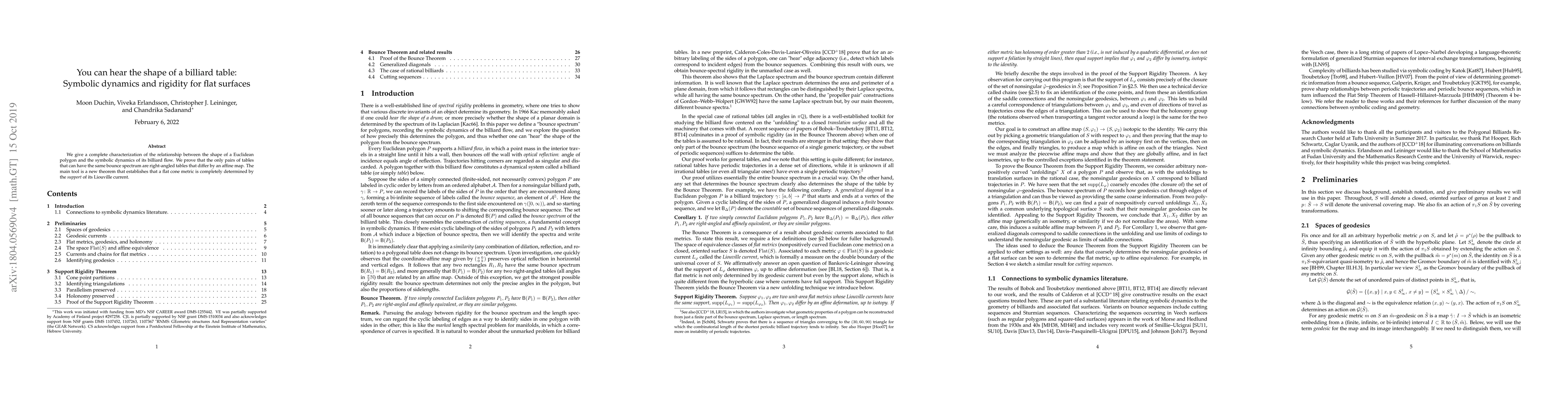 We give a complete characterization of the relationship between the shape of a Euclidean polygon and the symbolic dynamics of its billiard flow. We prove that the only pairs of tables that can have the same bounce spectrum are right-angled tables that differ by an affine map. The main tool is a new theorem that establishes that a flat cone metric is completely determined by the support of its Liouville current.