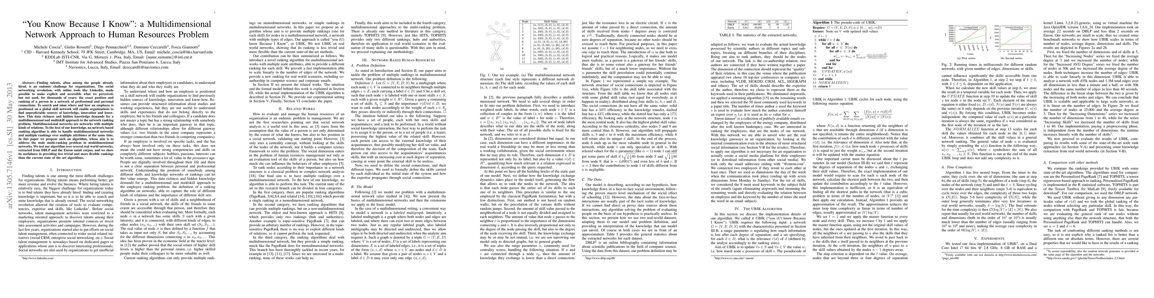 Finding talents, often among the people already hired, is an endemic challenge for organizations. The social networking revolution, with online tools like Linkedin, made possible to make explicit and accessible what we perceived, but not used, for thousands of years: the exact position and ranking of a person in a network of professional and personal connections. To search and mine where and how an employee is positioned on a global skill network will enable organizations to find unpredictable sources of knowledge, innovation and know-how. This data richness and hidden knowledge demands for a multidimensional and multiskill approach to the network ranking problem. Multidimensional networks are networks with multiple kinds of relations. To the best of our knowledge, no network-based ranking algorithm is able to handle multidimensional networks and multiple rankings over multiple attributes at the same time. In this paper we propose such an algorithm, whose aim is to address the node multi-ranking problem in multidimensional networks. We test our algorithm over several real world networks, extracted from DBLP and the Enron email corpus, and we show its usefulness in providing less trivial and more flexible rankings than the current state of the art algorithms.