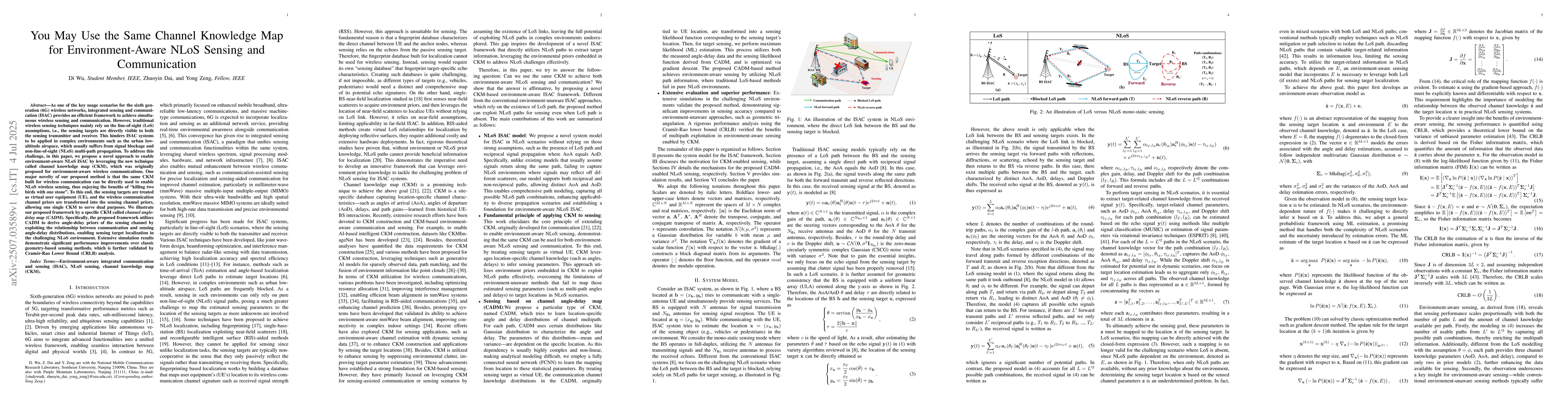 As one of the key usage scenarios for the sixth generation (6G) wireless networks, integrated sensing and communication (ISAC) provides an efficient framework to achieve simultaneous wireless sensing and communication. However, traditional wireless sensing techniques mainly rely on the line-of-sight (LoS) assumptions, i.e., the sensing targets are directly visible to both the sensing transmitter and receiver. This hinders ISAC systems to be applied in complex environments such as the urban low-altitude airspace, which usually suffers from signal blockage and non-line-of-sight (NLoS) multi-path propagation. To address this challenge, in this paper, we propose a novel approach to enable environment-aware NLoS ISAC by leveraging the new technique called channel knowledge map (CKM), which was originally proposed for environment-aware wireless communications. One major novelty of our proposed method is that the same CKM built for wireless communication can be directly used to enable NLoS wireless sensing, thus enjoying the benefits of ``killing two birds with one stone''. To this end, the sensing targets are treated as virtual user equipment (UE), and the wireless communication channel priors are transformed into the sensing channel priors, allowing one single CKM to serve dual purposes. We illustrate our proposed framework by a specific CKM called \emph{channel angle-delay map} (CADM). Specifically, the proposed framework utilizes CADM to derive angle-delay priors of the sensing channel by exploiting the relationship between communication and sensing angle-delay distributions, enabling sensing target localization in the challenging NLoS environment. Extensive simulation results demonstrate significant performance improvements over classic geometry-based sensing methods, which is further validated by Cram\'er-Rao Lower Bound (CRLB) analysis.