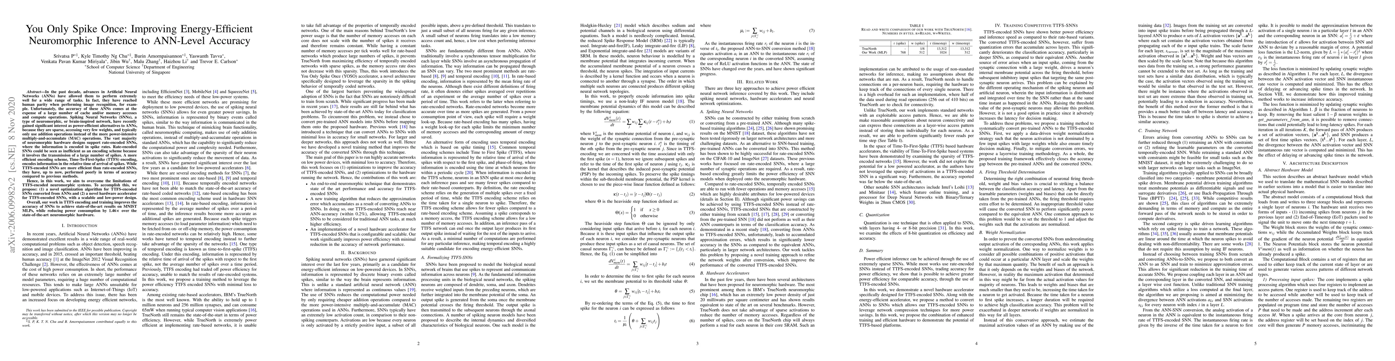 In the past decade, advances in Artificial Neural Networks (ANNs) have allowed them to perform extremely well for a wide range of tasks. In fact, they have reached human parity when performing image recognition, for example. Unfortunately, the accuracy of these ANNs comes at the expense of a large number of cache and/or memory accesses and compute operations. Spiking Neural Networks (SNNs), a type of neuromorphic, or brain-inspired network, have recently gained significant interest as power-efficient alternatives to ANNs, because they are sparse, accessing very few weights, and typically only use addition operations instead of the more power-intensive multiply-and-accumulate (MAC) operations. The vast majority of neuromorphic hardware designs support rate-encoded SNNs, where the information is encoded in spike rates. Rate-encoded SNNs could be seen as inefficient as an encoding scheme because it involves the transmission of a large number of spikes. A more efficient encoding scheme, Time-To-First-Spike (TTFS) encoding, encodes information in the relative time of arrival of spikes. While TTFS-encoded SNNs are more efficient than rate-encoded SNNs, they have, up to now, performed poorly in terms of accuracy compared to previous methods. Hence, in this work, we aim to overcome the limitations of TTFS-encoded neuromorphic systems. To accomplish this, we propose: (1) a novel optimization algorithm for TTFS-encoded SNNs converted from ANNs and (2) a novel hardware accelerator for TTFS-encoded SNNs, with a scalable and low-power design. Overall, our work in TTFS encoding and training improves the accuracy of SNNs to achieve state-of-the-art results on MNIST MLPs, while reducing power consumption by 1.46$\times$ over the state-of-the-art neuromorphic hardware.