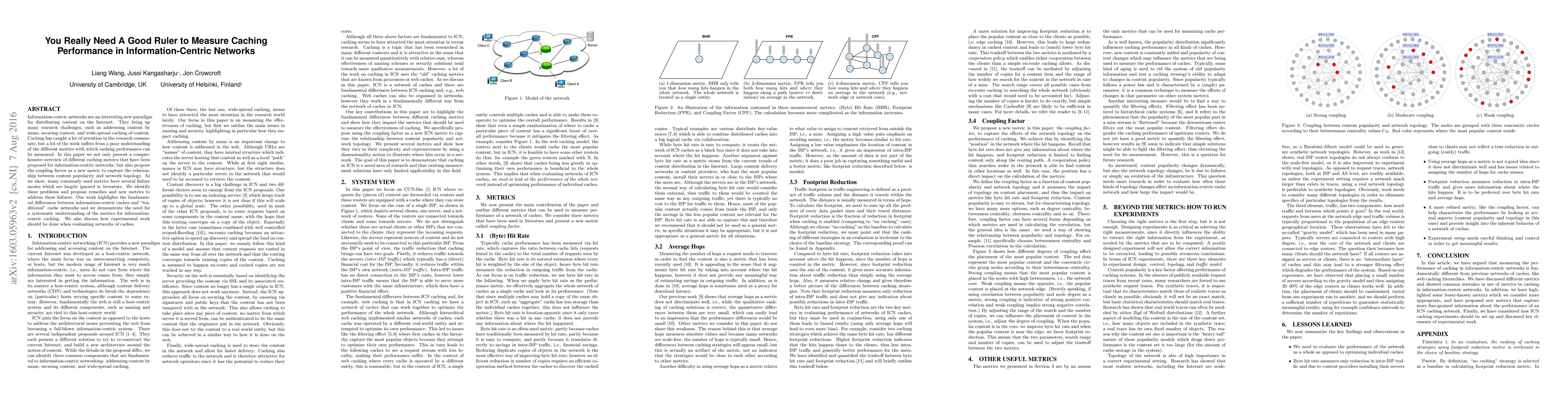 This paper reviews existing caching metrics for information-centric networks, identifies their shortcomings, and proposes the coupling factor as a new metric to better reflect content popularity and network topology. It emphasizes the need for a robust understanding of caching metrics to accurately evaluate performance in information-centric networks.
