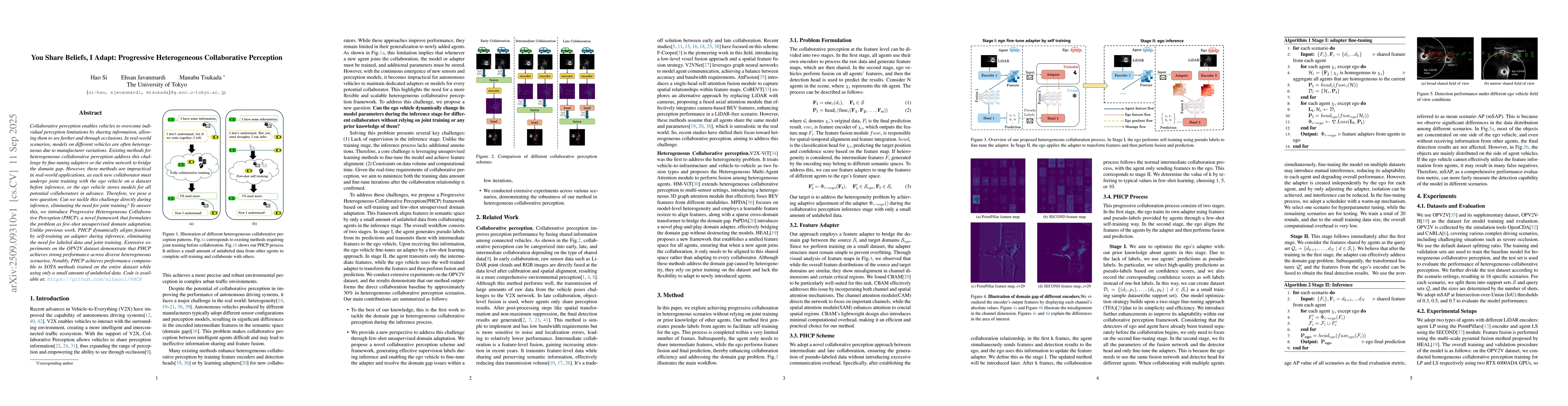 Collaborative perception enables vehicles to overcome individual perception limitations by sharing information, allowing them to see further and through occlusions. In real-world scenarios, models on different vehicles are often heterogeneous due to manufacturer variations. Existing methods for heterogeneous collaborative perception address this challenge by fine-tuning adapters or the entire network to bridge the domain gap. However, these methods are impractical in real-world applications, as each new collaborator must undergo joint training with the ego vehicle on a dataset before inference, or the ego vehicle stores models for all potential collaborators in advance. Therefore, we pose a new question: Can we tackle this challenge directly during inference, eliminating the need for joint training? To answer this, we introduce Progressive Heterogeneous Collaborative Perception (PHCP), a novel framework that formulates the problem as few-shot unsupervised domain adaptation. Unlike previous work, PHCP dynamically aligns features by self-training an adapter during inference, eliminating the need for labeled data and joint training. Extensive experiments on the OPV2V dataset demonstrate that PHCP achieves strong performance across diverse heterogeneous scenarios. Notably, PHCP achieves performance comparable to SOTA methods trained on the entire dataset while using only a small amount of unlabeled data.