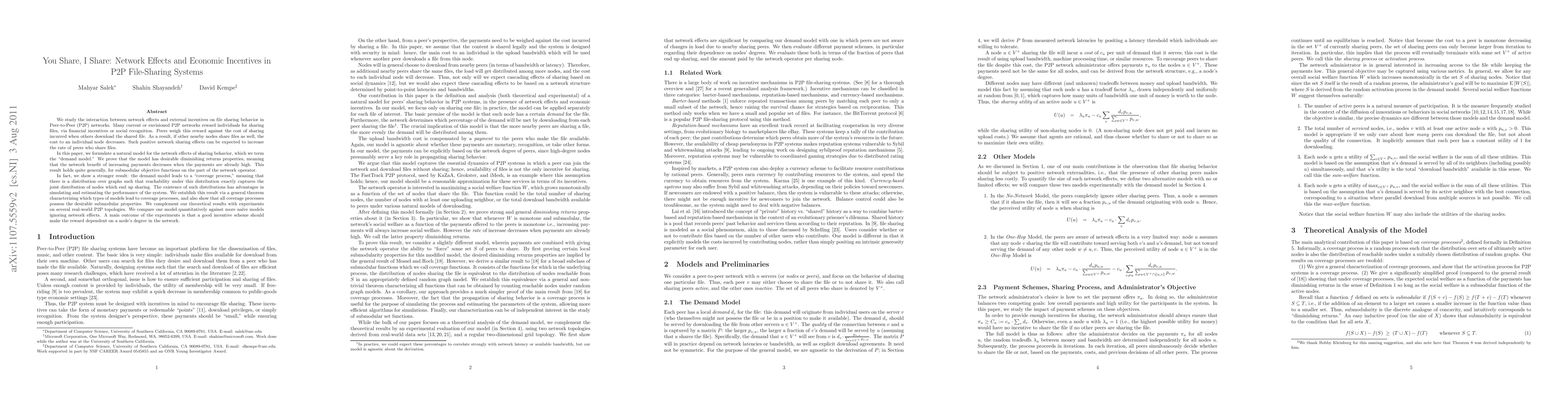 This paper studies how network effects and economic incentives affect file-sharing behavior in Peer-to-Peer networks, finding that rewards should depend on a node's degree in the network to maximize sharing.