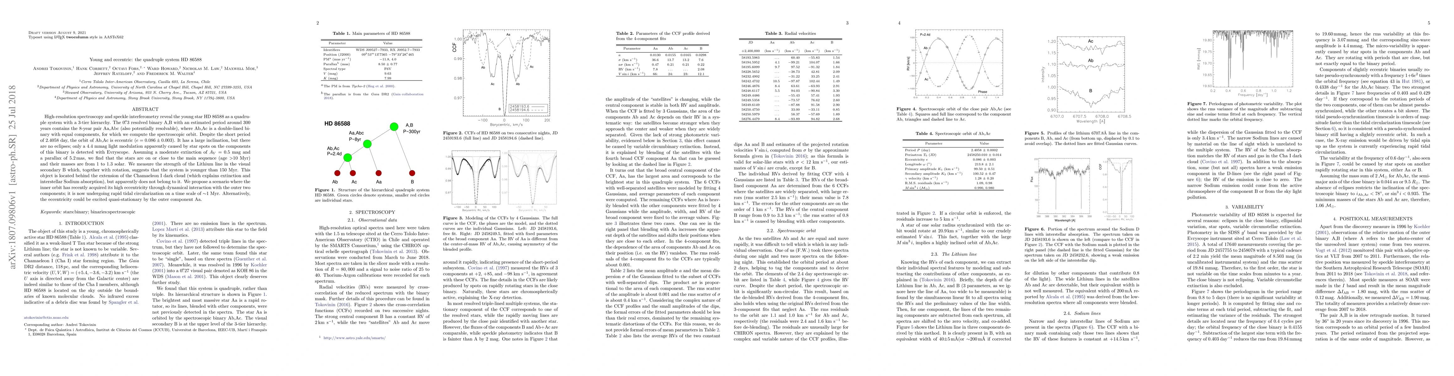 The research identifies HD 86588 as a complex quadruple star system with a short-period, eccentric binary (Ab, Ac) and a longer-period orbit for the Aa, Ab, Abc components. High-resolution spectroscopy and speckle interferometry reveal the system's 3-tier hierarchy. The eccentric inner binary's rapid tidal circularization is proposed, possibly triggered by interactions with outer components, suggesting a young age (younger than 150 Myr) supported by Lithium line strength in the visual secondary B.