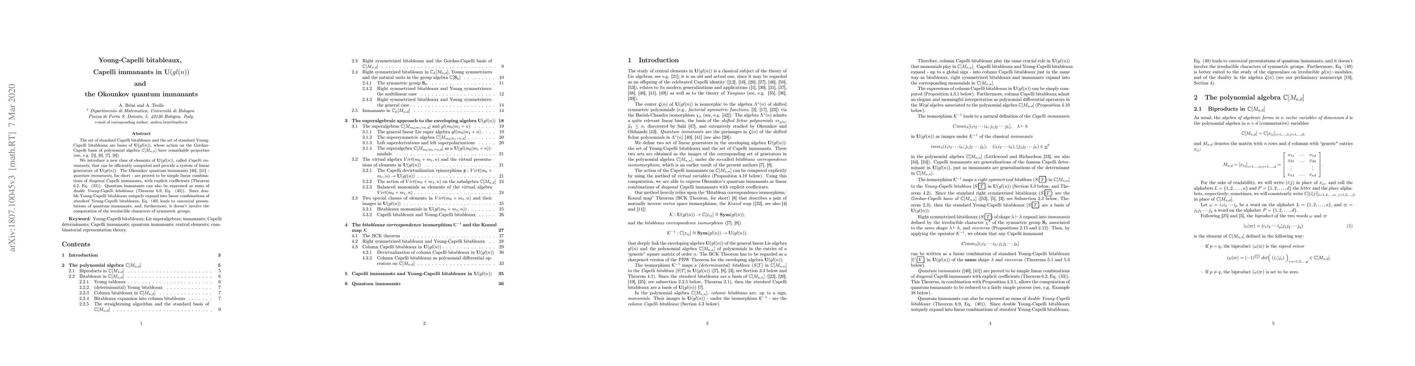 This paper introduces a new framework for studying determinants, permanents, and immanants in the polynomial algebra and their Lie algebra analogues, establishing Capelli bitableaux and immanants as key elements in the enveloping algebra of $U(gl(n))$. Capelli immanants are shown to generate $U(gl(n))$ and Okounkov quantum immanants are proven to be linear combinations of these.
