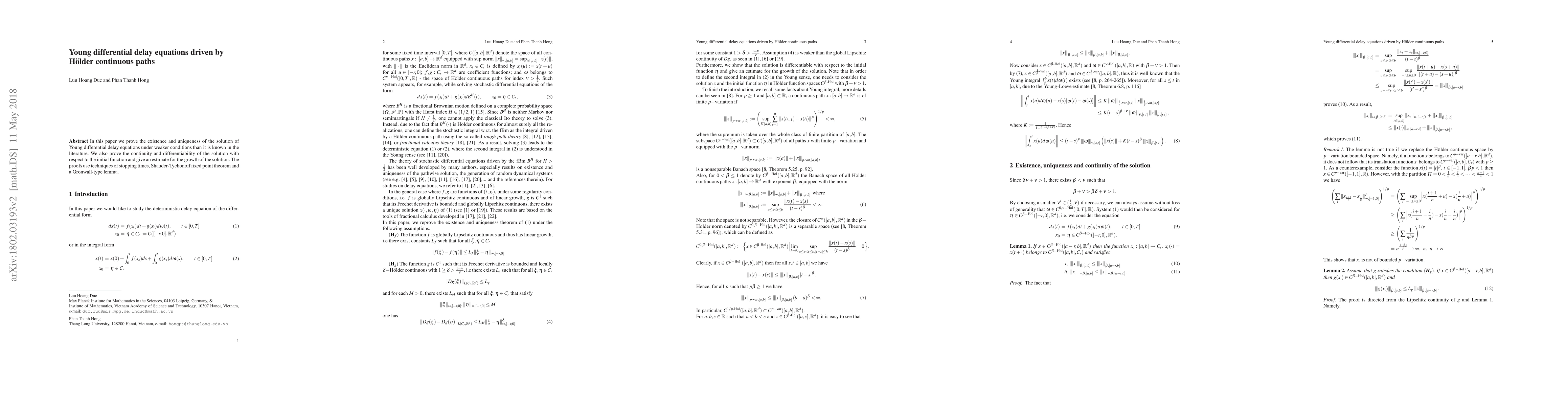 In this paper we prove the existence and uniqueness of the solution of Young differential delay equations under weaker conditions than it is known in the literature. We also prove the continuity and differentiability of the solution with respect to the initial function and give an estimate for the growth of the solution. The proofs use techniques of stopping times, Shauder-Tychonoff fixed point theorem and a Gronwall-type lemma.