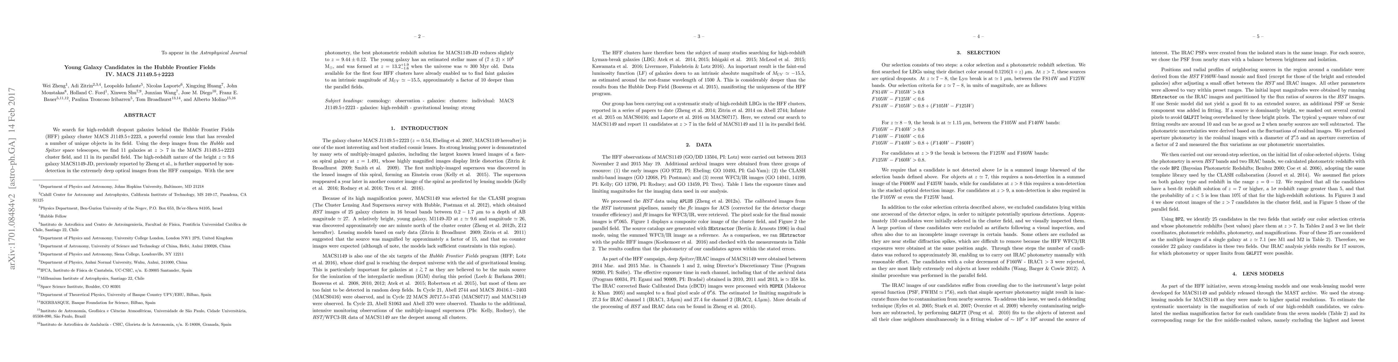 This paper identifies 11 high-redshift galaxies (z>7) behind the MACS J1149.5+2223 cluster using Hubble and Spitzer data, confirming the z~9.6 nature of the galaxy MACS1149-JD. The study reveals galaxies formed when the universe was ~300 Myr old, significantly deepening the search for early galaxies.