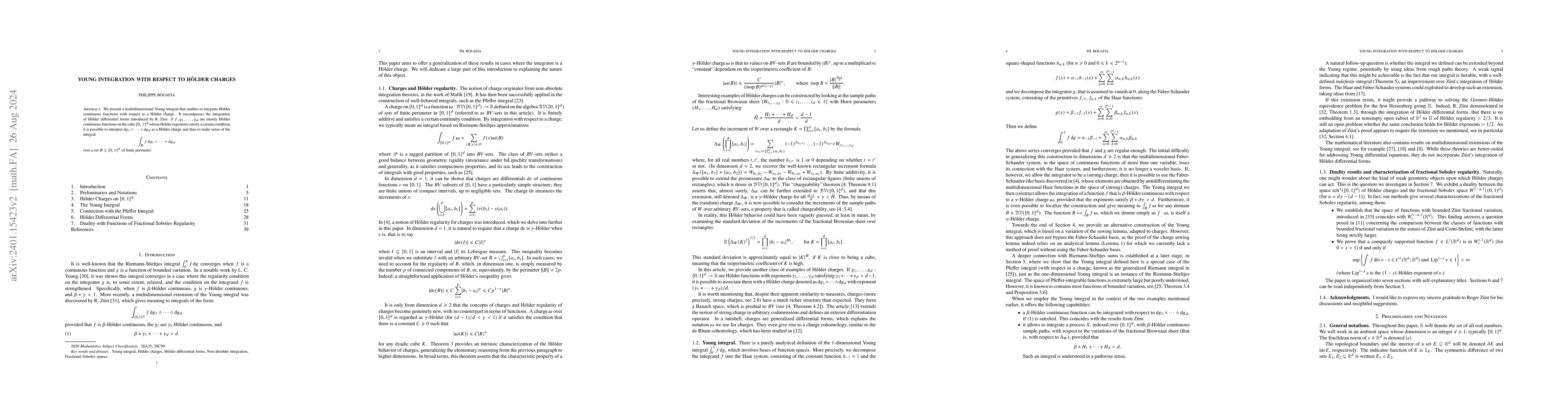 This paper introduces a multidimensional Young integral for integrating H\"older continuous functions with respect to H\"older charges, extending the integration of H\"older differential forms. It also applies this integral to stochastic processes and proves the duality between the space of H\"older charges and functions of bounded fractional variation.