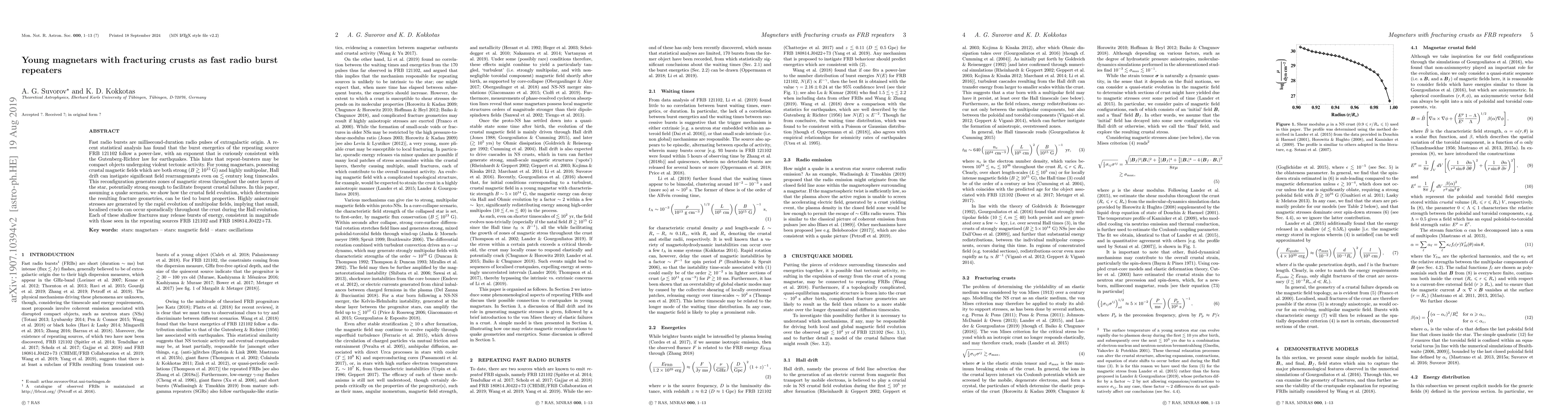 Fast radio bursts are millisecond-duration radio pulses of extragalactic origin. A recent statistical analysis has found that the burst energetics of the repeating source FRB 121102 follow a power-law, with an exponent that is curiously consistent with the Gutenberg-Richter law for earthquakes. This hints that repeat-bursters may be compact objects undergoing violent tectonic activity. For young magnetars, possessing crustal magnetic fields which are both strong ($B \gtrsim 10^{15}$ G) and highly multipolar, Hall drift can instigate significant field rearrangements even on $\lesssim$ century long timescales. This reconfiguration generates zones of magnetic stress throughout the outer layers of the star, potentially strong enough to facilitate frequent crustal failures. In this paper, assuming a quake scenario, we show how the crustal field evolution, which determines the resulting fracture geometries, can be tied to burst properties. Highly anisotropic stresses are generated by the rapid evolution of multipolar fields, implying that small, localised cracks can occur sporadically throughout the crust during the Hall evolution. Each of these shallow fractures may release bursts of energy, consistent in magnitude with those seen in the repeating sources FRB 121102 and FRB 180814.J0422+73.