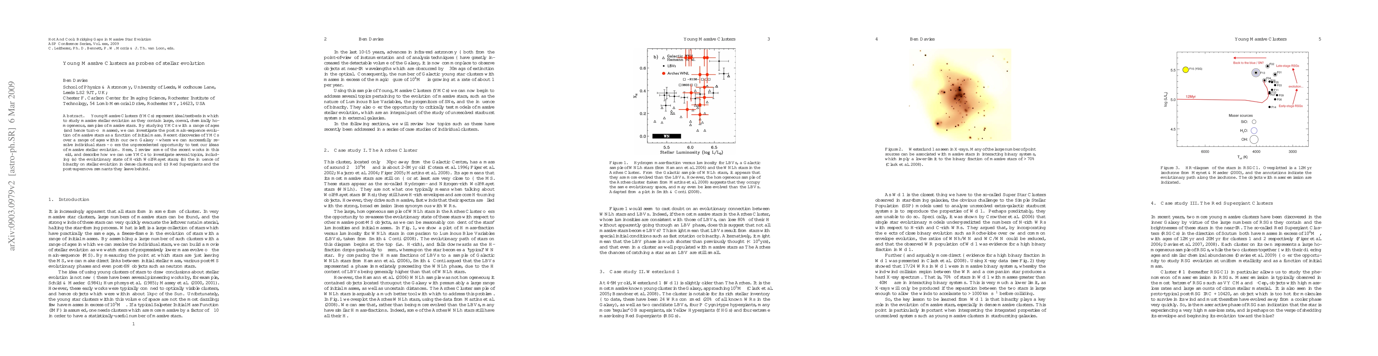 This paper reviews the use of Young Massive Clusters (YMCs) to study massive stellar evolution, focusing on their ability to provide insights into the post main-sequence evolution of massive stars. It highlights recent discoveries of YMCs in our Galaxy, which allow for the investigation of topics such as the evolutionary state of H-rich Wolf-Rayet stars, the impact of binarity, and the remnants left by Red Supergiants.