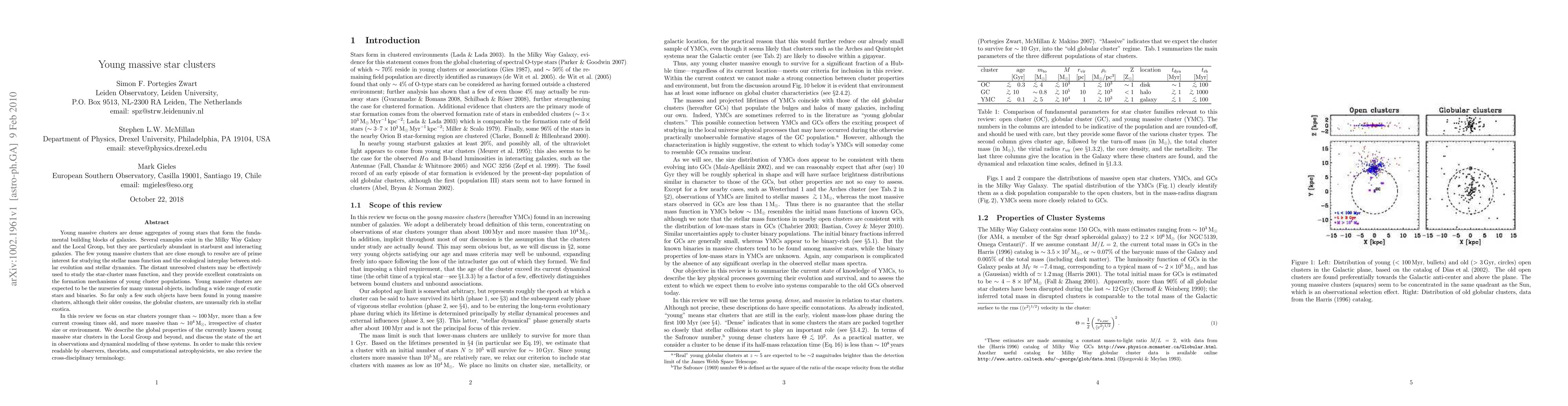 This paper reviews young massive star clusters, focusing on those younger than 100 Myr and more massive than $10^4$ \Msun, to study the stellar mass function and formation mechanisms. It discusses the global properties and current observational and dynamical modeling techniques for these clusters.