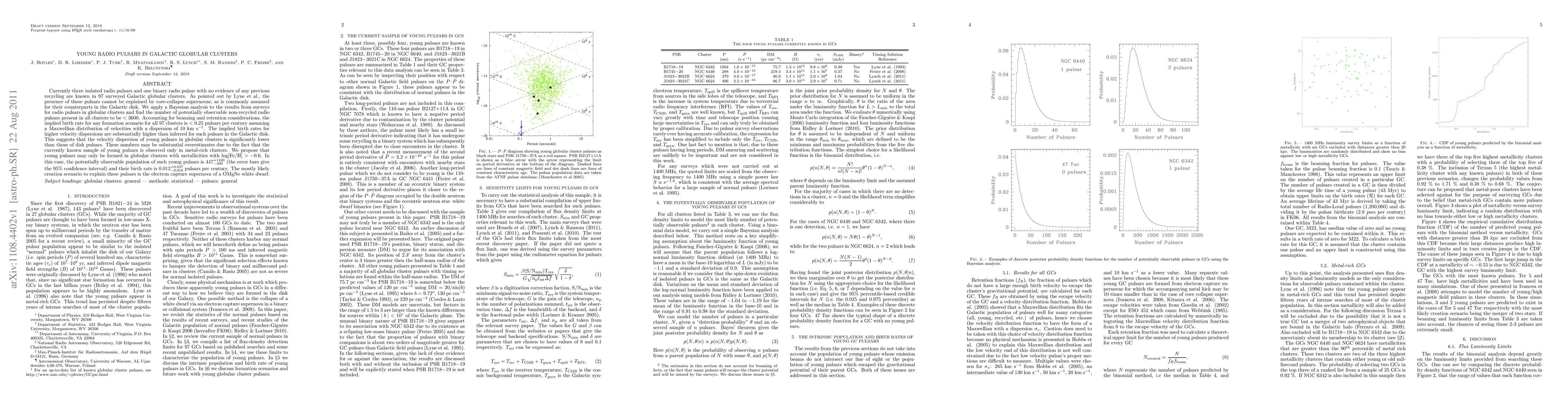 This study finds that the birth rate of young radio pulsars in Galactic globular clusters is significantly lower than in the Galactic disk, suggesting a lower velocity dispersion. The Bayesian analysis indicates that only a small number of non-recycled pulsars are likely present, proposing that young pulsars may only form in metal-rich clusters with log[Fe/H] > -0.6.