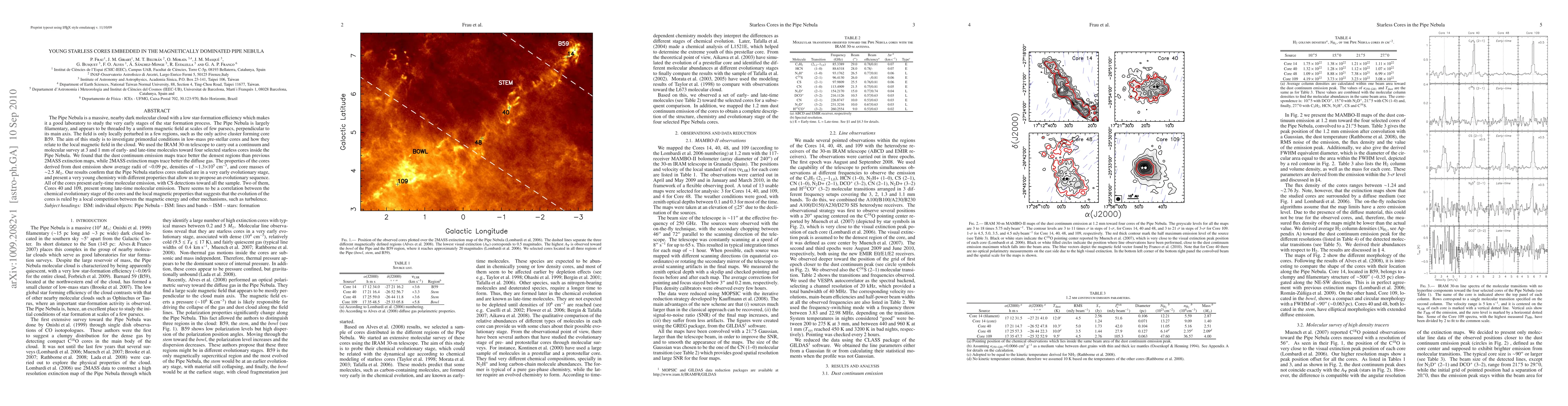 This study investigates starless cores in the Pipe Nebula, a filamentary dark molecular cloud, using IRAM 30-m telescope observations. The research reveals that the cores are in an early evolutionary stage, with properties indicating a competition between magnetic fields and turbulence influencing their development.