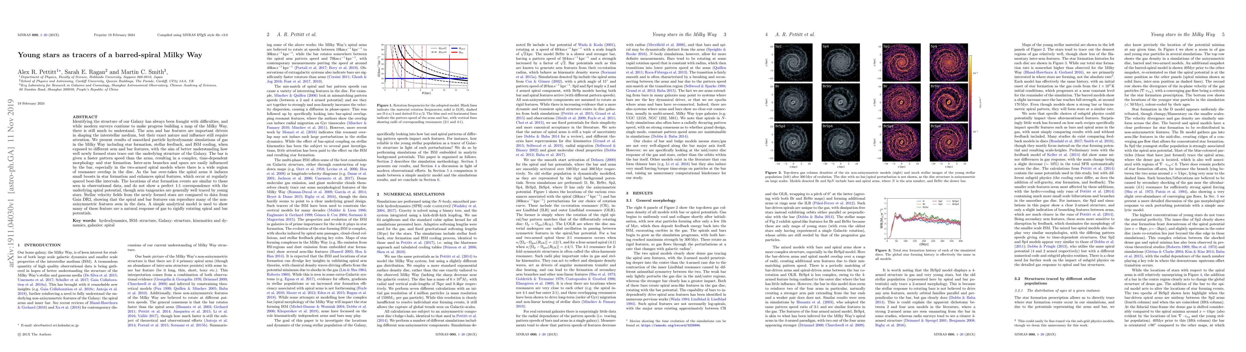 This paper uses smoothed particle hydrodynamic simulations to study how young stars trace the structure of a barred-spiral Milky Way, revealing that while they generally follow arm tangencies, they do not perfectly match the underlying spiral potential. The bar's faster pattern speed induces complex star formation patterns and spurs, which align with observed non-axisymmetric features in Gaia DR2 data.