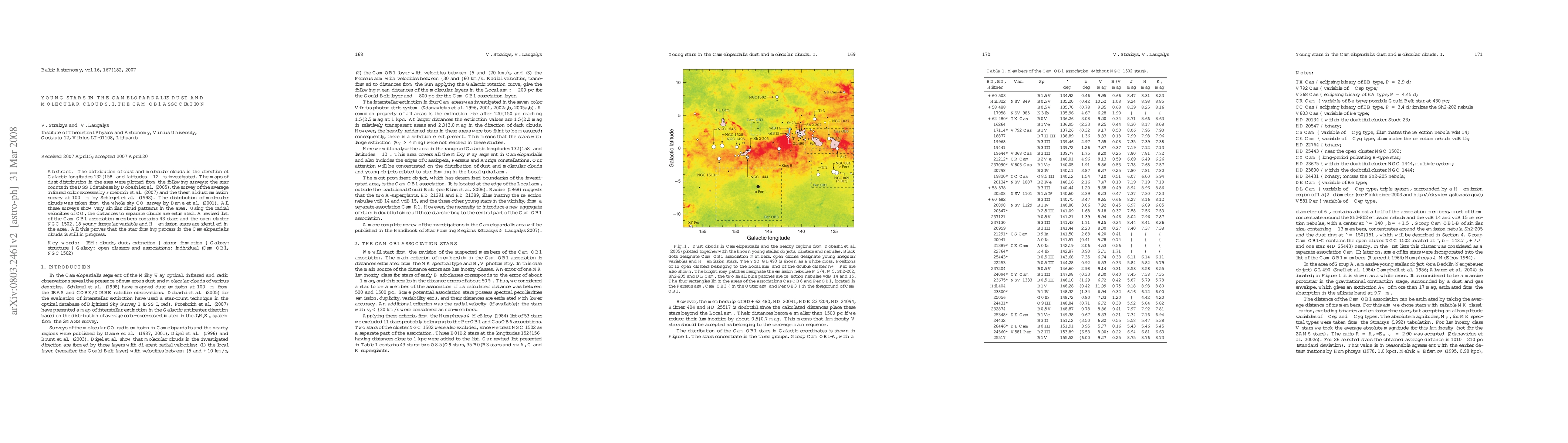 This paper investigates the distribution of dust and molecular clouds in the Camelopardalis region, using various surveys and identifying 43 members of the Cam OB1 association, including the open cluster NGC 1502. The study confirms ongoing star formation in the region.