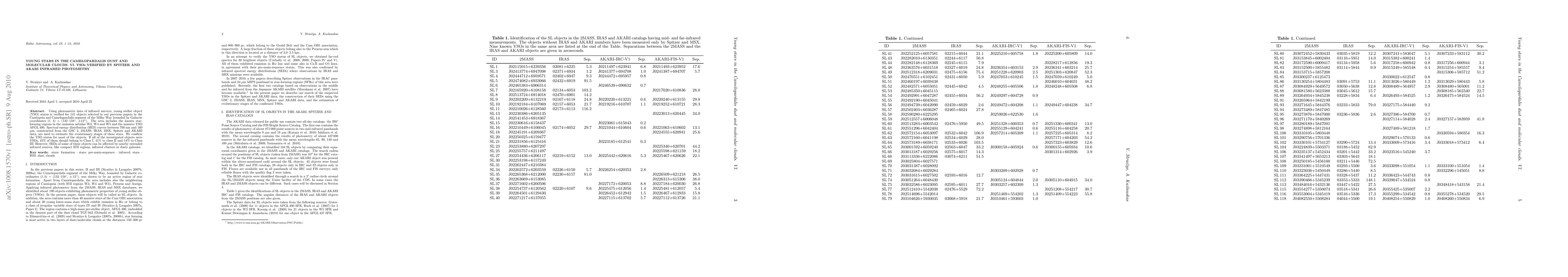 Researchers verified 141 young stellar objects in the Camelopardalis dust and molecular clouds using infrared photometry from Spitzer and AKARI, confirming their status as YSOs and estimating evolutionary stages with spectral energy distribution curves.