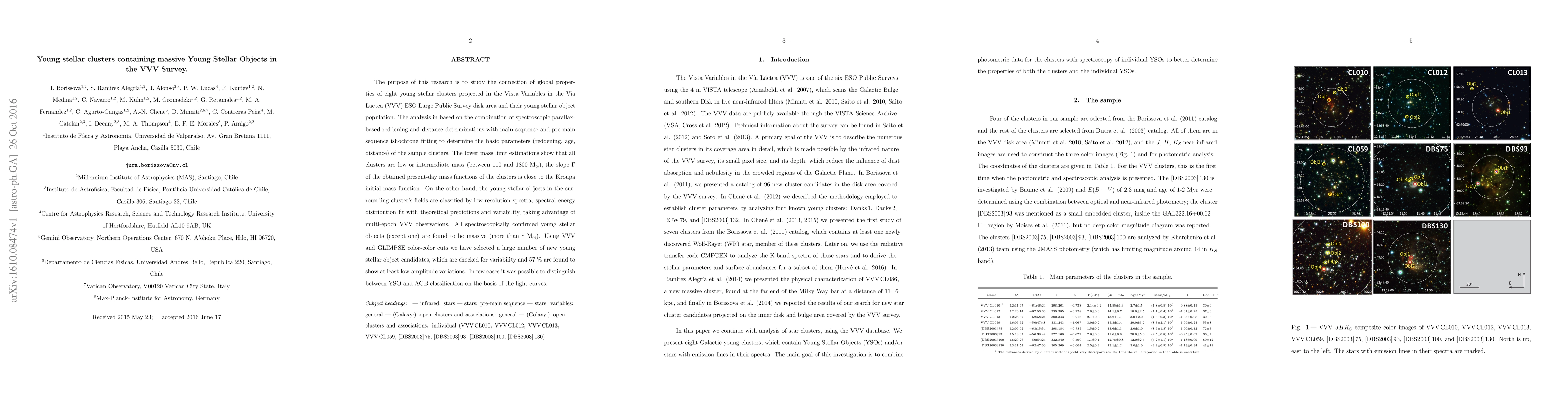The paper presents a comprehensive analysis of young stellar clusters using a combination of spectroscopic parallax, isochrone fitting, and variability analysis to determine cluster properties and identify massive YSO candidates.