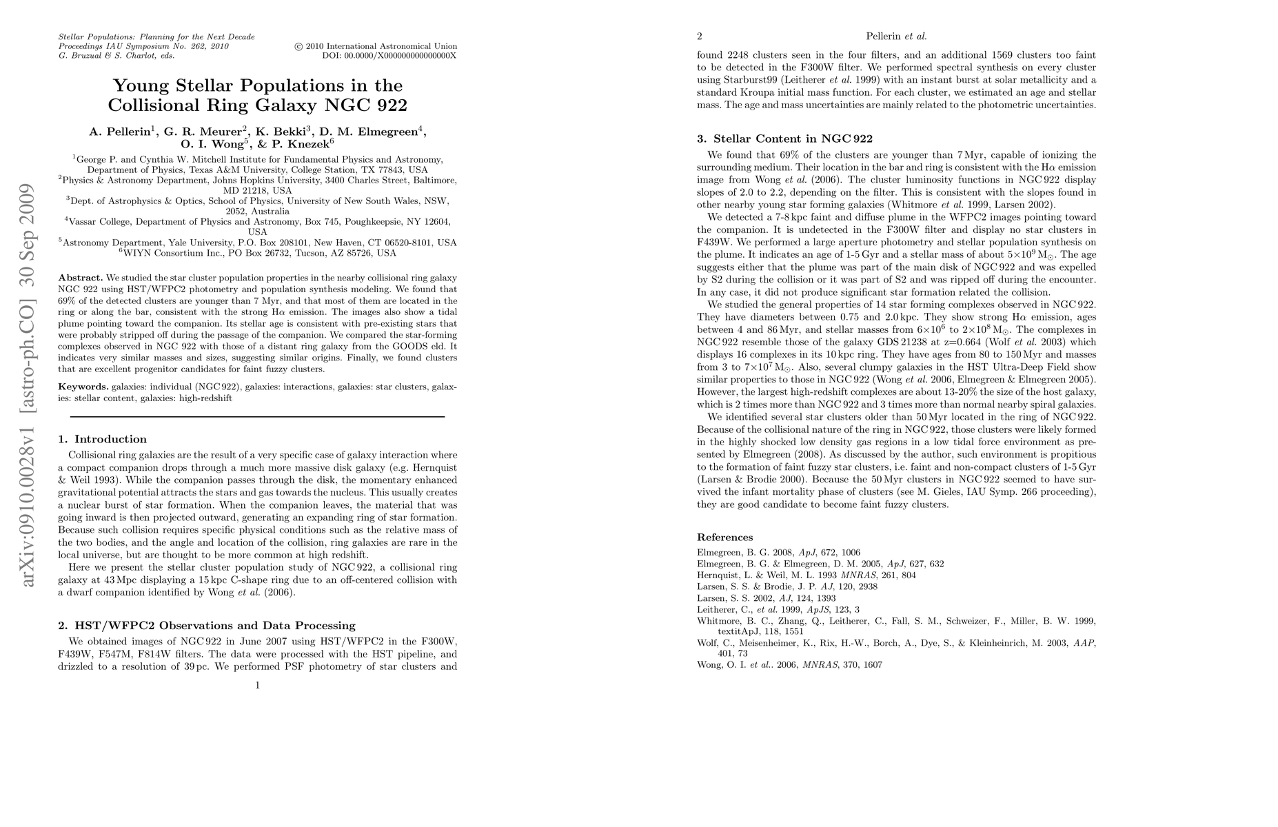 NGC 922 has a high percentage of young stellar clusters (<7 Myr) concentrated in the ring and bar regions, suggesting recent star formation triggered by the galaxy's collision with a companion. These findings offer insights into the origins and evolution of young galaxies like NGC 922.