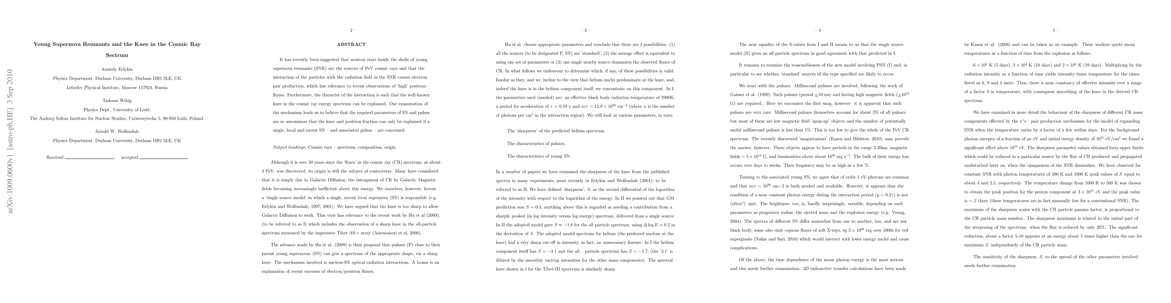 It has recently been suggested that neutron stars inside the shells of young supernova remnants (SNR) are the sources of PeV cosmic rays and that the interaction of the particles with the radiation field in the SNR causes electron pair production, which has relevance to recent observations of 'high' positron fluxes. Furthermore, the character of the interaction is such that the well-known knee in the cosmic ray energy spectrum can be explained. Our examination of the mechanism leads us to believe that the required parameters of SN and pulses are so uncommon that the knee and positron fraction can only be explained if a single, local and recent SN - and associated pulsar - are concerned.