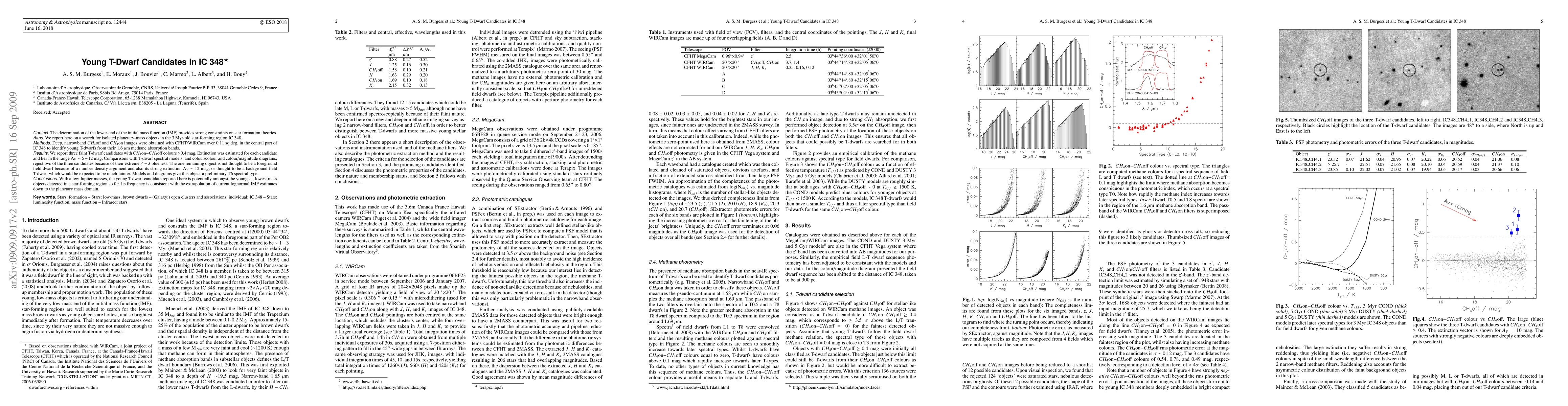 This paper reports the discovery of three young T-dwarf candidates in the IC 348 star-forming region, identified via methane absorption bands. One candidate, with strong extinction, is consistent with a T6 spectral type and is potentially one of the youngest and lowest mass objects detected, supporting current IMF extrapolations.