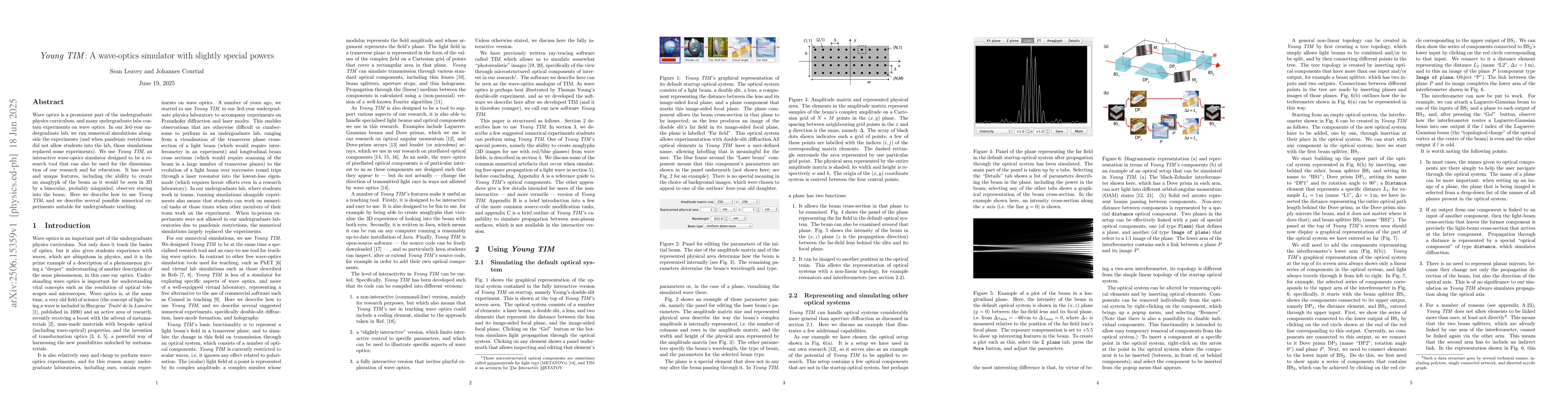 Wave optics is a prominent part of the undergraduate physics curriculum, and many undergraduate labs contain experiments on wave optics. In our 3rd-year undergraduate lab, we run numerical simulations alongside the experiments (and when pandemic restrictions did not allow students into the lab, those simulations replaced some experiments). We use Young TIM, an interactive wave-optics simulator designed to be a research tool that can also be used for the dissemination of our research and for education. It has novel and unique features, including the ability to create an anaglyph of the beam as it would be seen in 3D by a binocular, probably misguided, observer staring into the beam. Here we describe how to use Young TIM, and we describe several possible numerical experiments suitable for undergraduate teaching.