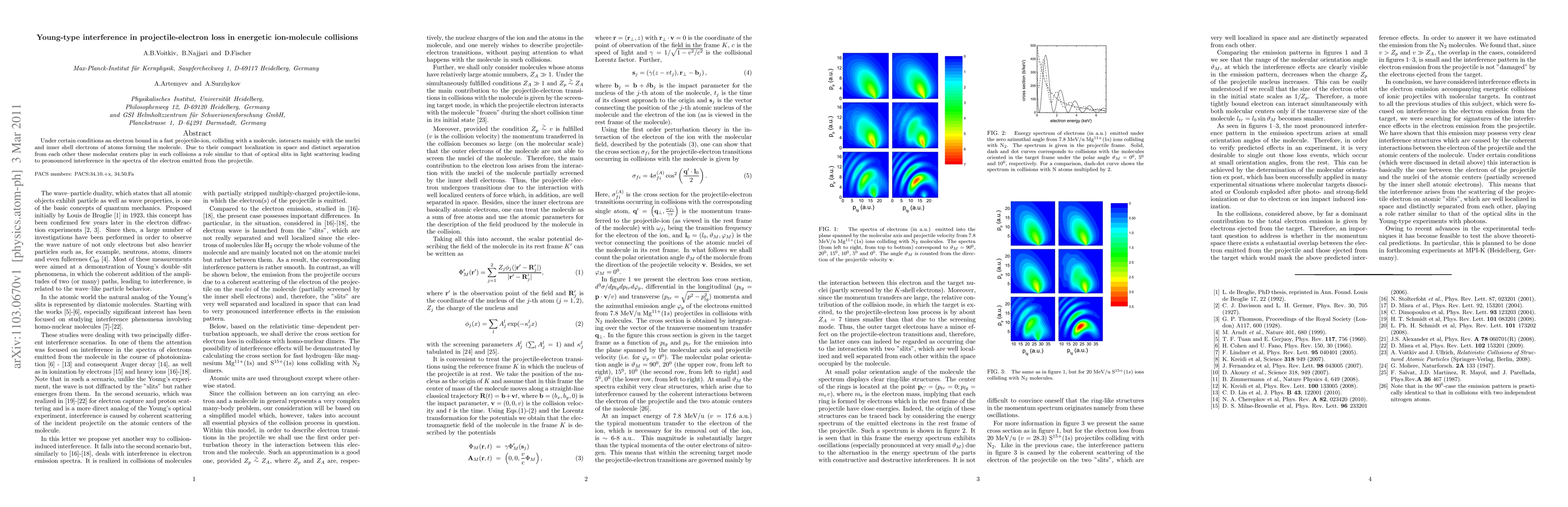 This study explores the interference patterns observed in electron loss from fast projectile ions colliding with molecules, likening the molecular centers' role to optical slits in light scattering, which results in distinct interference in the emitted electron spectra.