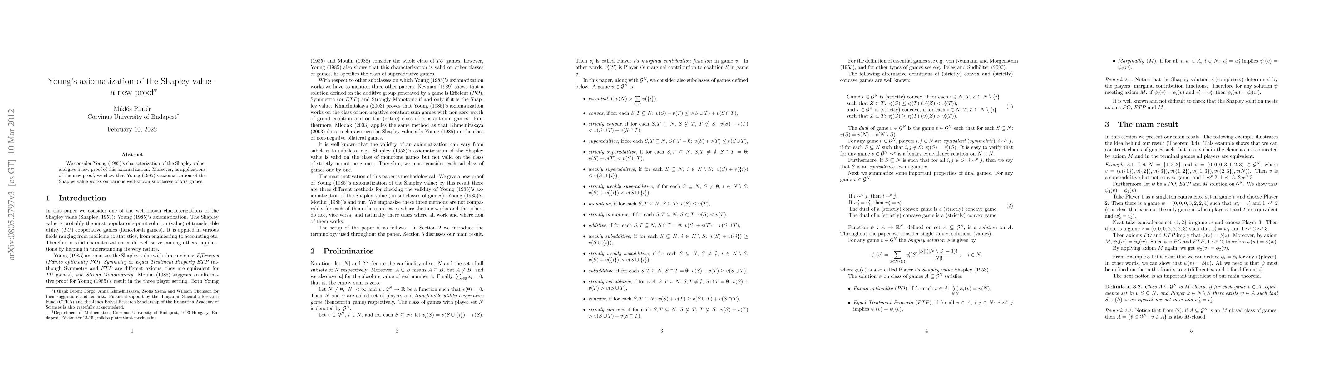 We consider Young (1985)'s characterization of the Shapley value, and give a new proof of this axiomatization. Moreover, as applications of the new proof, we show that Young (1985)'s axiomatization of the Shapley value works on various well-known subclasses of TU games.