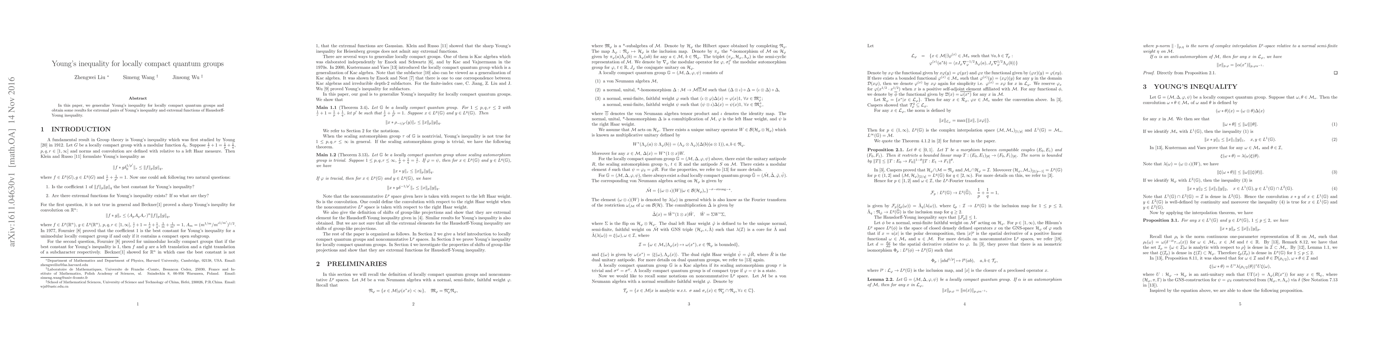 Summary: This paper extends Young's inequality to locally compact quantum groups, deriving results for extremal pairs and functions related to the Hausdorff-Young inequality within this quantum framework.