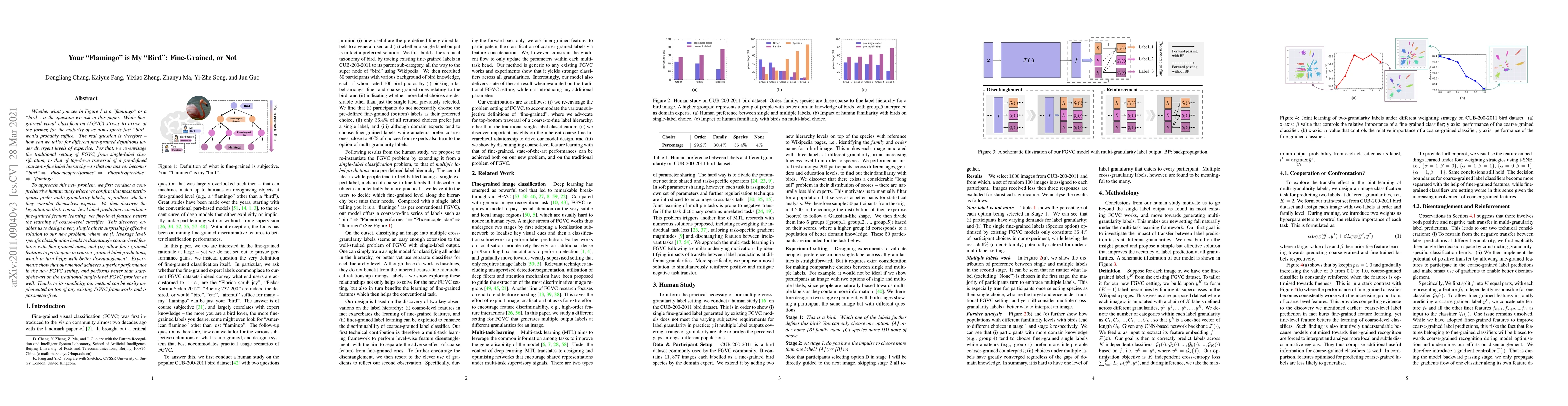 Whether what you see in Figure 1 is a "flamingo" or a "bird", is the question we ask in this paper. While fine-grained visual classification (FGVC) strives to arrive at the former, for the majority of us non-experts just "bird" would probably suffice. The real question is therefore -- how can we tailor for different fine-grained definitions under divergent levels of expertise. For that, we re-envisage the traditional setting of FGVC, from single-label classification, to that of top-down traversal of a pre-defined coarse-to-fine label hierarchy -- so that our answer becomes "bird"-->"Phoenicopteriformes"-->"Phoenicopteridae"-->"flamingo". To approach this new problem, we first conduct a comprehensive human study where we confirm that most participants prefer multi-granularity labels, regardless whether they consider themselves experts. We then discover the key intuition that: coarse-level label prediction exacerbates fine-grained feature learning, yet fine-level feature betters the learning of coarse-level classifier. This discovery enables us to design a very simple albeit surprisingly effective solution to our new problem, where we (i) leverage level-specific classification heads to disentangle coarse-level features with fine-grained ones, and (ii) allow finer-grained features to participate in coarser-grained label predictions, which in turn helps with better disentanglement. Experiments show that our method achieves superior performance in the new FGVC setting, and performs better than state-of-the-art on traditional single-label FGVC problem as well. Thanks to its simplicity, our method can be easily implemented on top of any existing FGVC frameworks and is parameter-free.