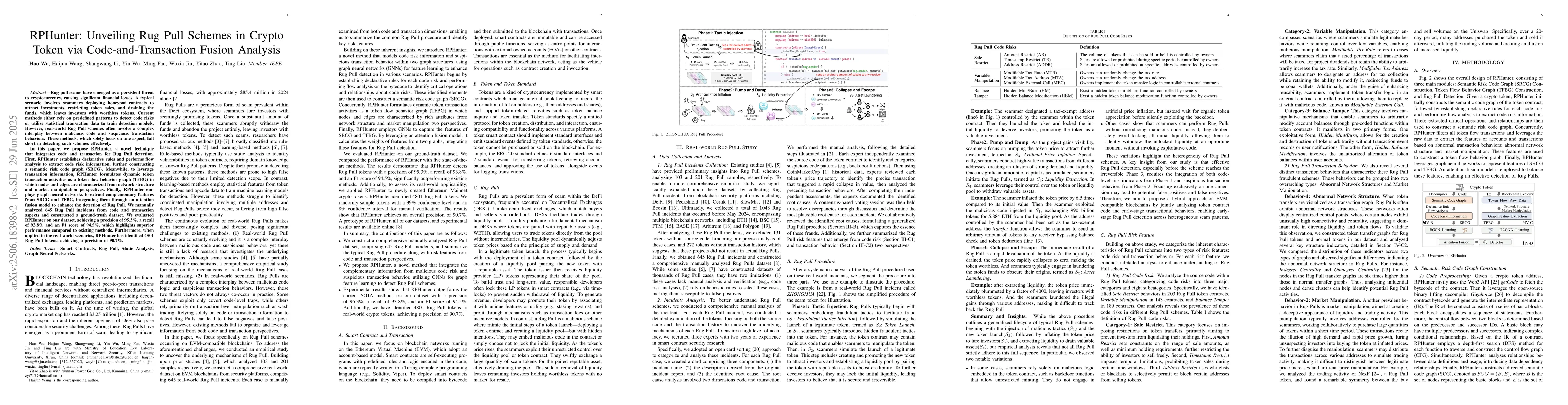 Rug pull scams have emerged as a persistent threat to cryptocurrency, causing significant financial losses. A typical scenario involves scammers deploying honeypot contracts to attract investments, restricting token sales, and draining the funds, which leaves investors with worthless tokens. Current methods either rely on predefined patterns to detect code risks or utilize statistical transaction data to train detection models. However, real-world Rug Pull schemes often involve a complex interplay between malicious code and suspicious transaction behaviors. These methods, which solely focus on one aspect, fall short in detecting such schemes effectively. In this paper, we propose RPhunter, a novel technique that integrates code and transaction for Rug Pull detection. First, RPhunter establishes declarative rules and performs flow analysis to extract code risk information, further constructing a semantic risk code graph (SRCG). Meanwhile, to leverage transaction information, RPhunter formulates dynamic token transaction activities as a token flow behavior graph (TFBG) in which nodes and edges are characterized from network structure and market manipulation perspectives. Finally, RPhunter employs graph neural networks to extract complementary features from SRCG and TFBG, integrating them through an attention fusion model to enhance the detection of Rug Pull. We manually analyzed 645 Rug Pull incidents from code and transaction aspects and constructed a ground-truth dataset. We evaluated RPhunter on our dataset, achieving a precision of 95.3%, a recall of 93.8% and an F1 score of 94.5%, which highlights superior performance compared to existing state-of-the-art methods. Furthermore, when applied to the real-world scenarios, RPhunter has identified 4801 Rug Pull tokens, achieving a precision of 91%.