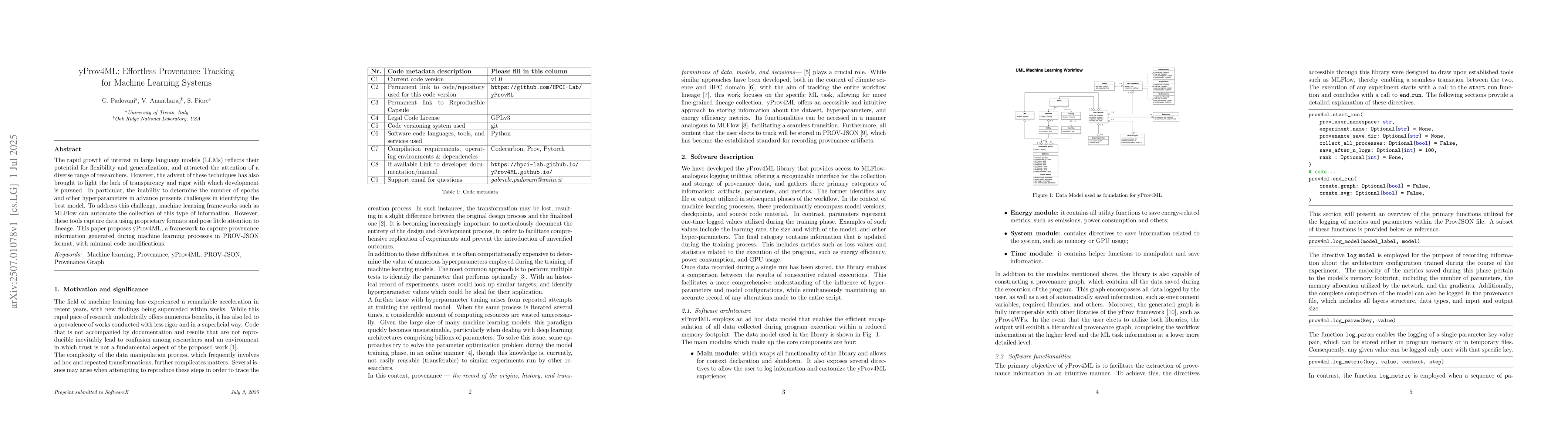 The rapid growth of interest in large language models (LLMs) reflects their potential for flexibility and generalization, and attracted the attention of a diverse range of researchers. However, the advent of these techniques has also brought to light the lack of transparency and rigor with which development is pursued. In particular, the inability to determine the number of epochs and other hyperparameters in advance presents challenges in identifying the best model. To address this challenge, machine learning frameworks such as MLFlow can automate the collection of this type of information. However, these tools capture data using proprietary formats and pose little attention to lineage. This paper proposes yProv4ML, a framework to capture provenance information generated during machine learning processes in PROV-JSON format, with minimal code modifications.