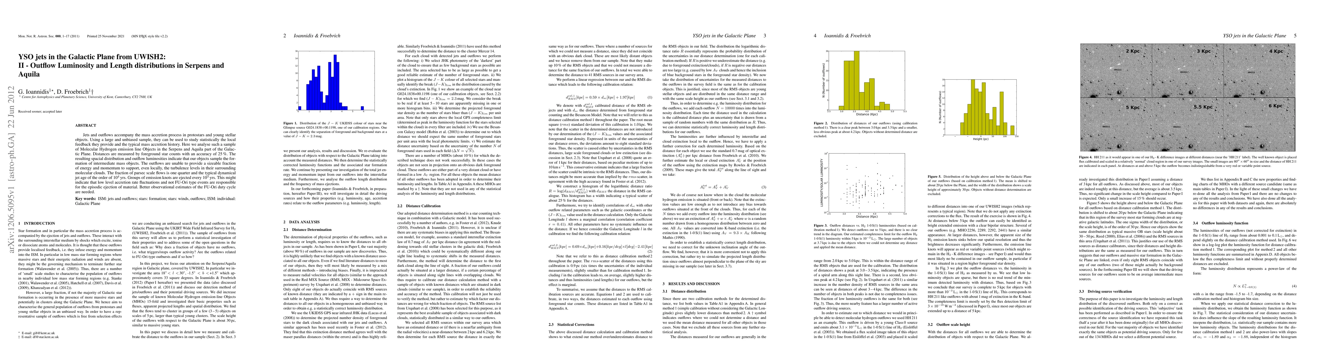 Jets and outflows accompany the mass accretion process in protostars and young stellar objects. Using a large and unbiased sample, they can be used to study statistically the local feedback they provide and the typical mass accretion history. Here we analyse such a sample of Molecular Hydrogen emission line Objects in the Serpens and Aquila part of the Galactic Plane. Distances are measured by foreground star counts with an accuracy of 25%. The resulting spacial distribution and outflow luminosities indicate that our objects sample the formation of intermediate mass objects. The outflows are unable to provide a sizeable fraction of energy and momentum to support, even locally, the turbulence levels in their surrounding molecular clouds. The fraction of parsec scale flows is one quarter and the typical dynamical jet age of the order of 1E4yrs. Groups of emission knots are ejected every 1E3yrs. This might indicate that low level accretion rate fluctuations and not FU-Ori type events are responsible for the episodic ejection of material. Better observational estimates of the FU-Ori duty cycle are needed.