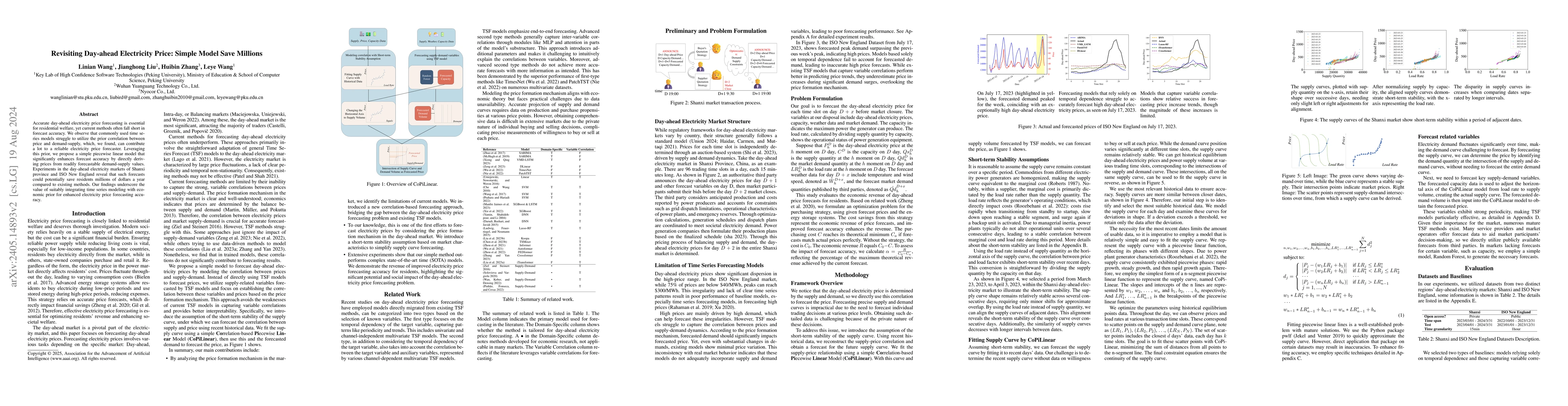 The paper proposes YUI, a simplified model for day-ahead electricity price forecasting based on invariance assumptions that simplify supply and demand curve modeling. Compared to existing methods, YUI reduces forecast error by 13.8% in MAE and 28.7% in sMAPE in the Shanxi market.