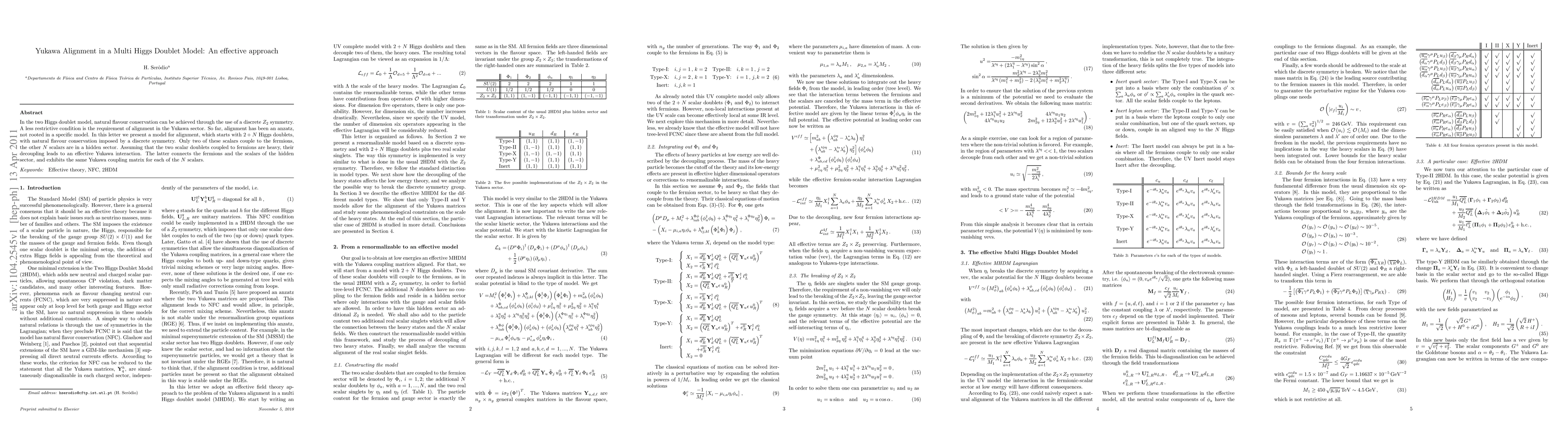 This paper proposes a model for Yukawa alignment in a two Higgs doublet framework, where natural flavour conservation is ensured by a discrete Z2 symmetry. The model introduces 2+N Higgs doublets, with only two coupling to fermions, leading to an effective Yukawa interaction that aligns the Yukawa coupling matrix for all N hidden sector scalars.
