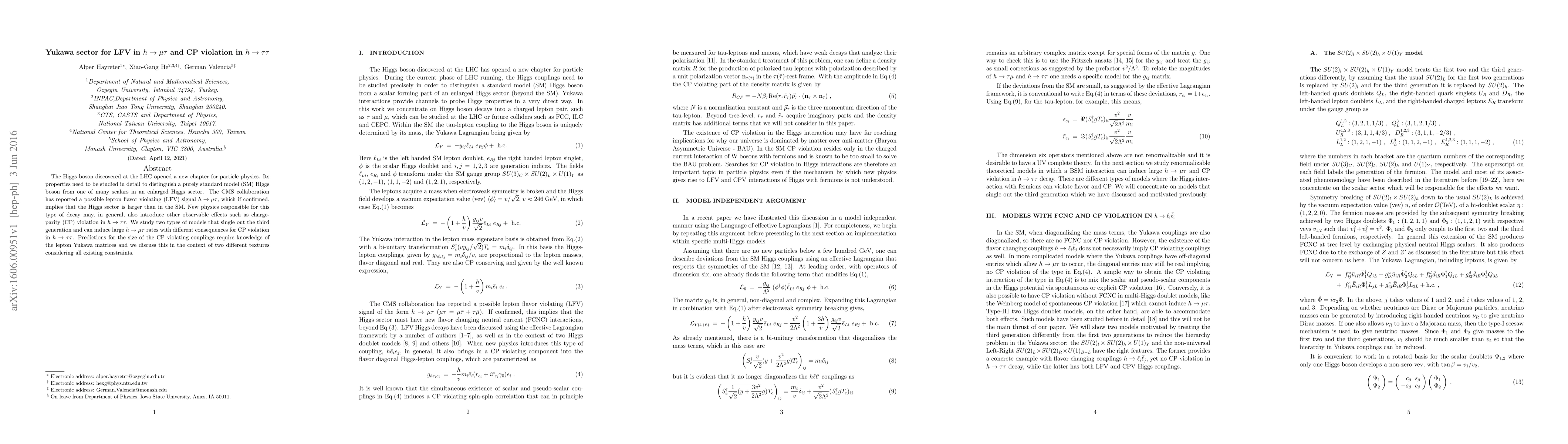 This paper explores the Yukawa sector's role in lepton flavor violation in the decay $h\to\mu\tau$ and CP violation in $h\to\tau\tau$, investigating models that extend the Higgs sector beyond the Standard Model. It examines two textures of lepton Yukawa matrices under existing constraints to predict CP violating couplings.