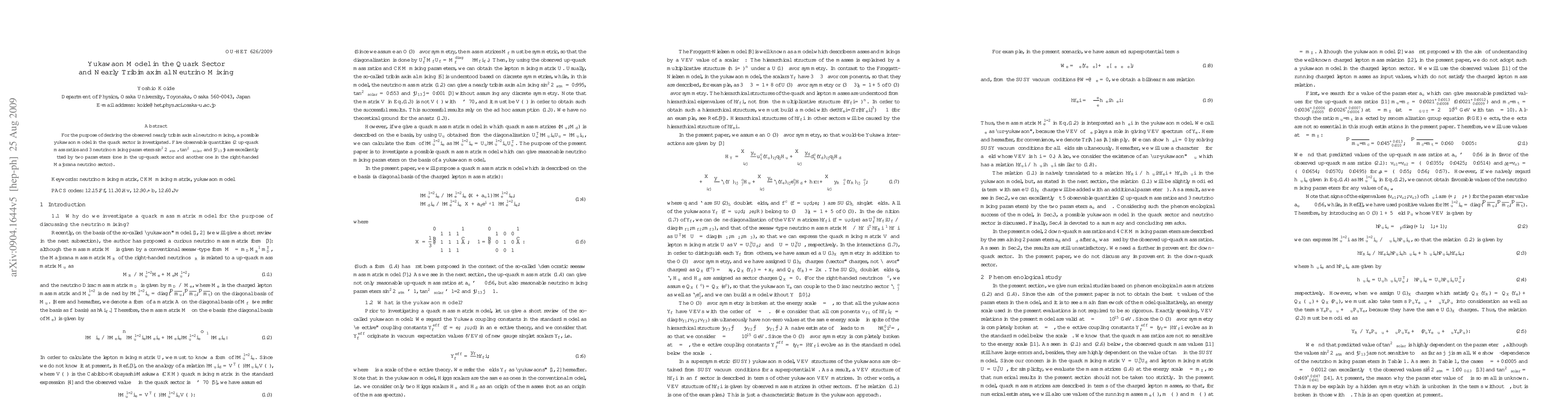 For the purpose of deriving the observed nearly tribimaximal neutrino mixing, a possible yukawaon model in the quark sector is investigated. Five observable quantities (2 up-quark mass ratios and 3 neutrino mixing parameters \sin^2 2\theta_{atm}, \tan^2\theta_{solar} and |U_{13}|) are excellently fitted by two parameters (one in the up-quark sector and another one in the right-handed Majorana neutrino sector).