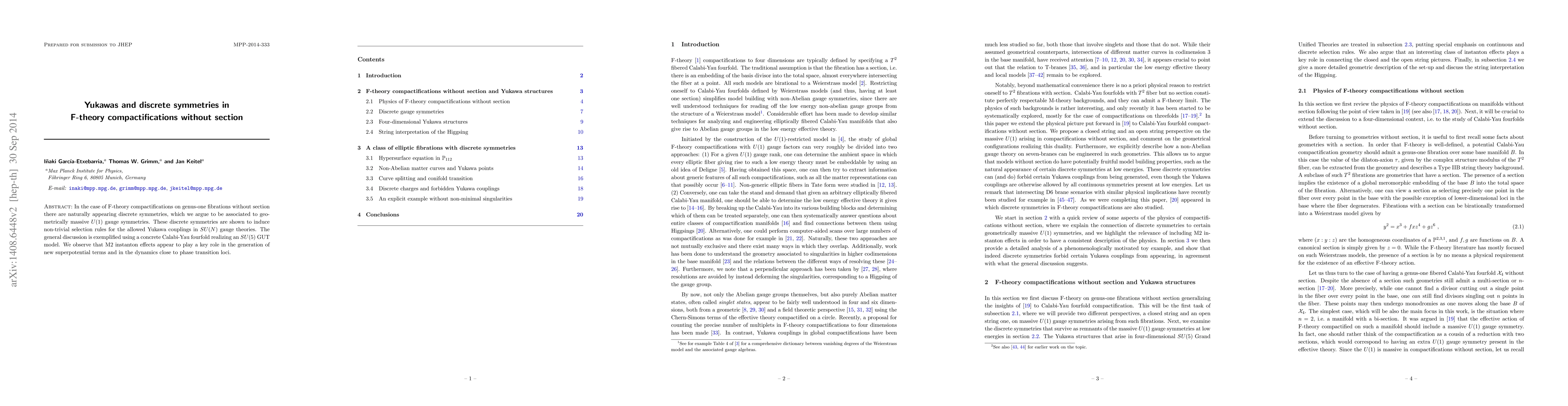 In the case of F-theory compactifications on genus-one fibrations without section there are naturally appearing discrete symmetries, which we argue to be associated to geometrically massive U(1) gauge symmetries. These discrete symmetries are shown to induce non-trivial selection rules for the allowed Yukawa couplings in SU(N) gauge theories. The general discussion is exemplified using a concrete Calabi-Yau fourfold realizing an SU(5) GUT model. We observe that M2 instanton effects appear to play a key role in the generation of new superpotential terms and in the dynamics close to phase transition loci.