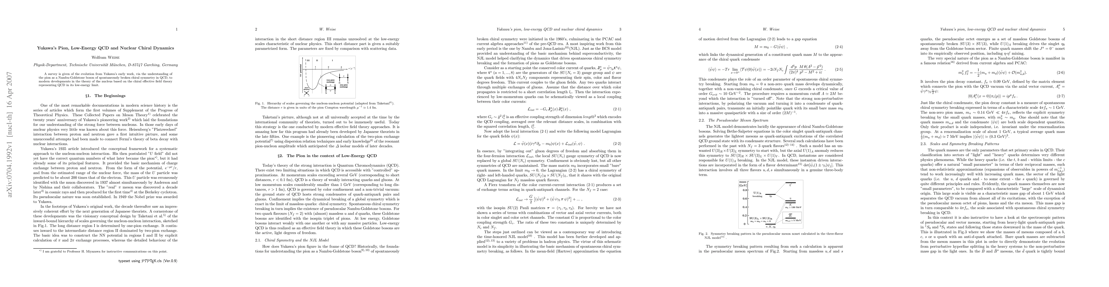 A survey is given of the evolution from Yukawa's early work, via the understanding of the pion as a Nambu-Goldstone boson of spontaneously broken chiral symmetry in QCD, to modern developments in the theory of the nucleus based on the chiral effective field theory representing QCD in its low-energy limit.