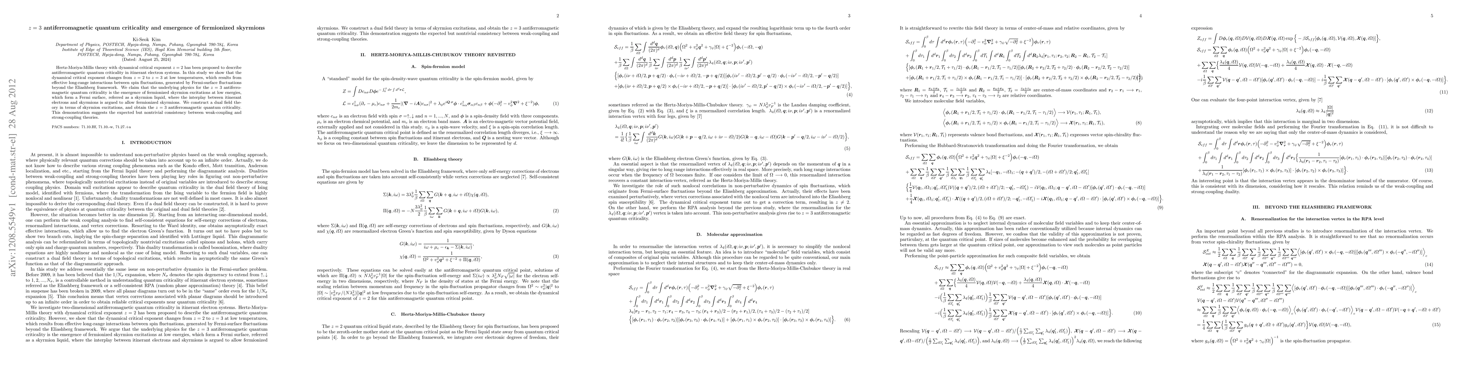 This paper demonstrates that the dynamical critical exponent $z$ shifts from $z = 2$ to $z = 3$ in antiferromagnetic quantum criticality, attributing this change to long-range spin fluctuation interactions. The study proposes that fermionized skyrmion excitations emerge at low energies, forming a skyrmion liquid that underpins the $z = 3$ criticality.