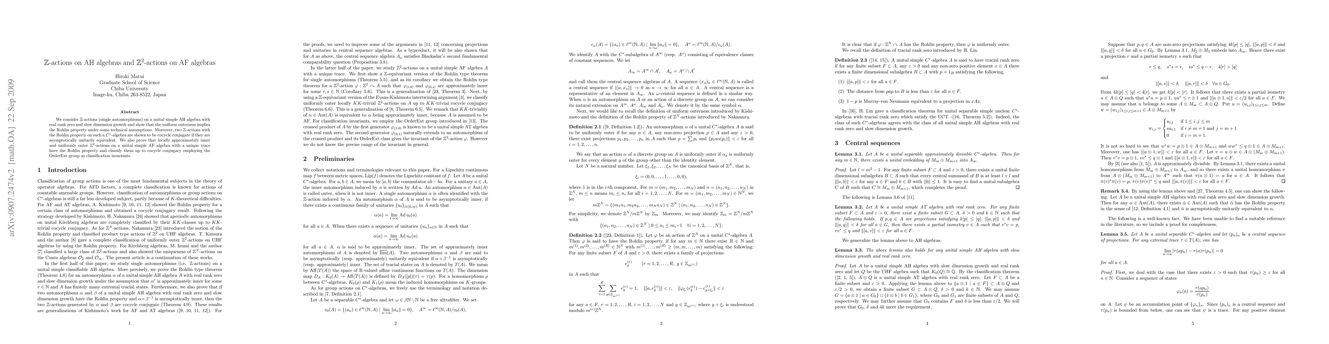 This paper studies Z-actions on unital simple AH algebras, proving that uniform outerness implies the Rohlin property and that such actions are cocycle conjugate if asymptotically unitarily equivalent. It also examines Z^2-actions on unital simple AF algebras, showing they possess the Rohlin property and classifying them via the OrderExt group.