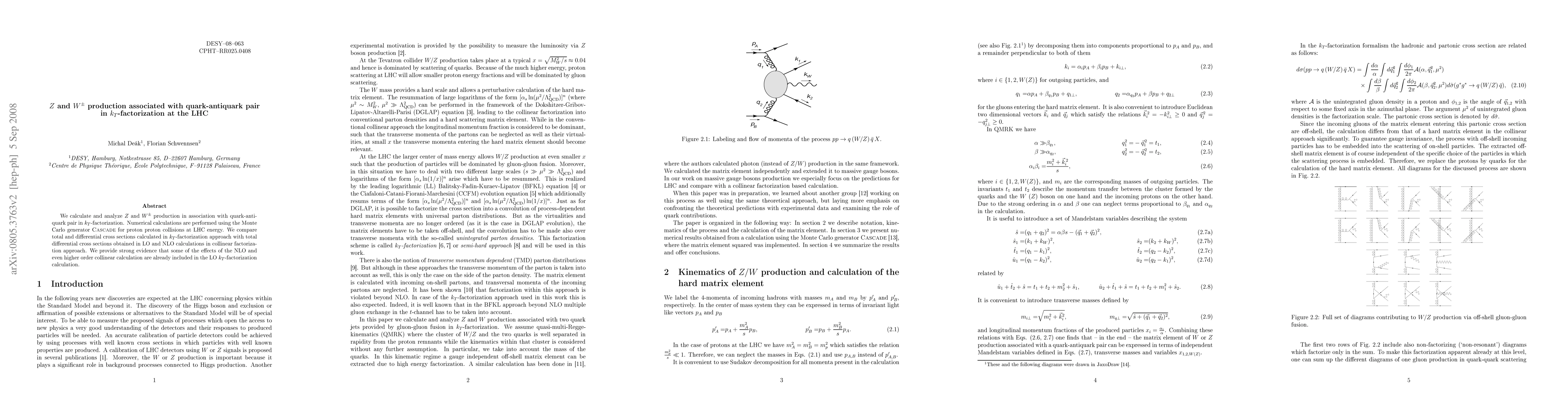 We calculate and analyze Z and W production in association with quark-antiquark pair in k_T-factorization. Numerical calculations are performed using the Monte Carlo generator CASCADE for proton proton collisions at LHC energy. We compare total and differential cross sections calculated in k_T-factorization approach with total differential cross sections obtained in LO and NLO calculations in collinear factorization approach. We provide strong evidence that some of the effects of the NLO and even higher order collinear calculation are already included in the LO k_T-factorization calculation.