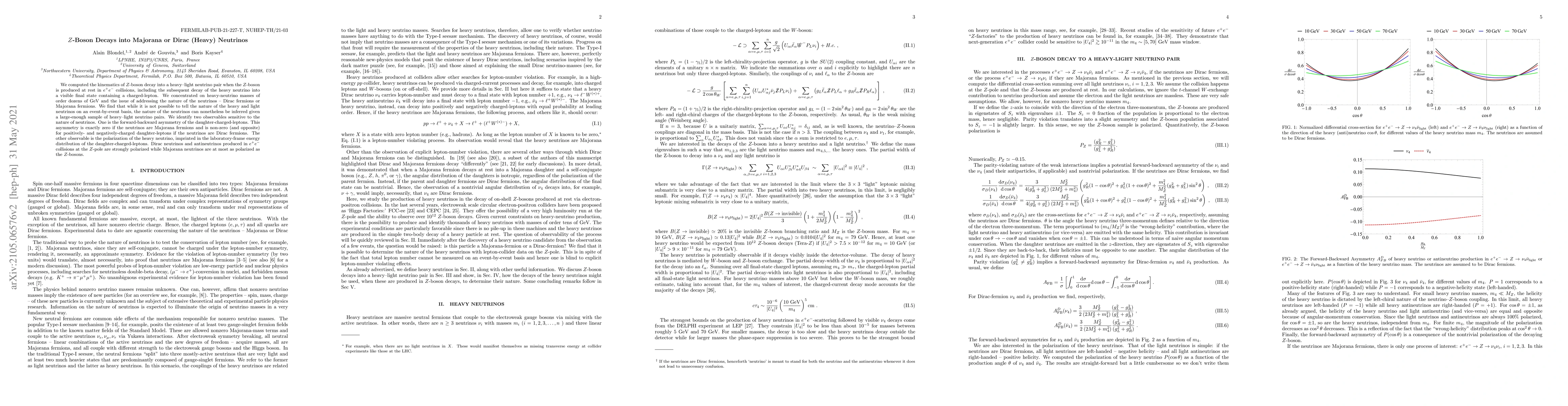 We computed the kinematics of Z-boson decay into a heavy-light neutrino pair when the Z-boson is produced at rest in electron-positron collisions, including the subsequent decay of the heavy neutrino into a visible final state containing a charged-lepton. We concentrated on heavy-neutrino masses of order dozens of GeV and the issue of addressing the nature of the neutrinos - Dirac fermions or Majorana fermions. We find that while it is not possible to tell the nature of the heavy and light neutrinos on an event-by-event basis, the nature of the neutrinos can nonetheless be inferred given a large-enough sample of heavy-light neutrino pairs. We identify two observables sensitive to the nature of neutrinos. One is the forward-backward asymmetry of the daughter-charged-leptons. This asymmetry is exactly zero if the neutrinos are Majorana fermions and is non-zero (and opposite) for positively- and negatively-charged daughter-leptons if the neutrinos are Dirac fermions. The other observable is the polarization of the heavy neutrino, imprinted in the laboratory-frame energy distribution of the daughter-charged-leptons. Dirac neutrinos and antineutrinos produced in electron-positron collisions at the Z-pole are strongly polarized while Majorana neutrinos are at most as polarized as the $Z$-bosons.