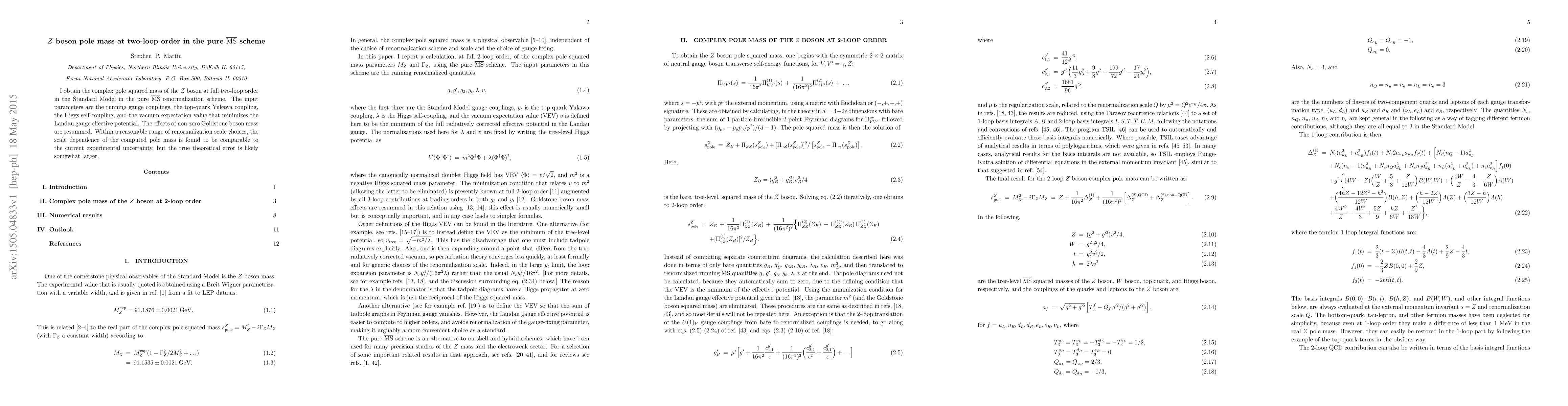 This paper calculates the complex pole squared mass of the Z boson at two-loop order in the Standard Model using the pure MS-bar scheme, incorporating running gauge couplings and the top-quark Yukawa coupling. The results show that the scale dependence of the computed pole mass is comparable to current experimental uncertainties.