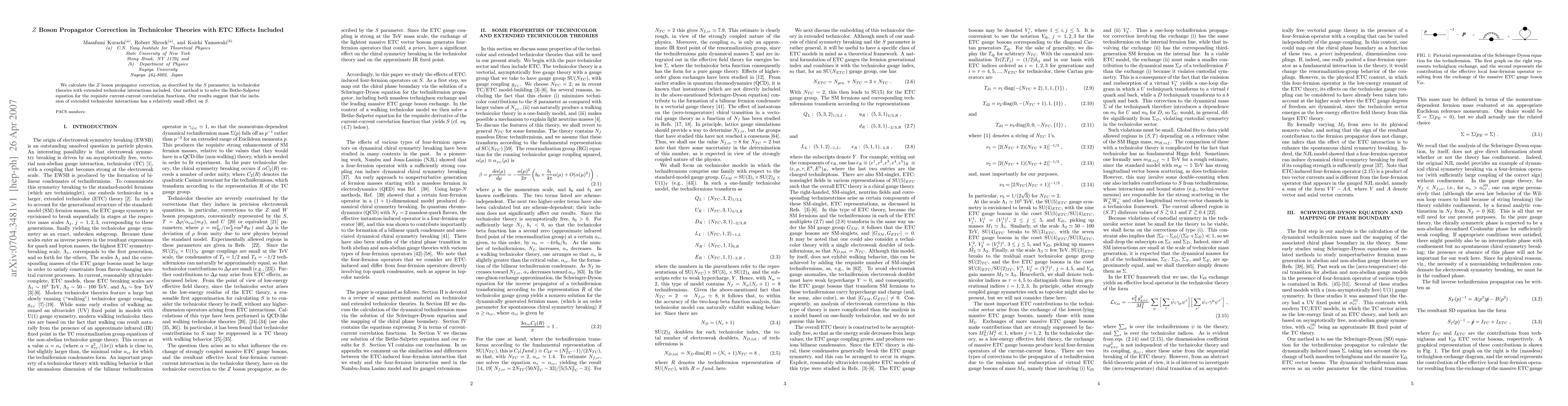 Researchers calculated the Z boson propagator correction in technicolor theories with extended technicolor interactions, finding a relatively small effect on the S parameter.
