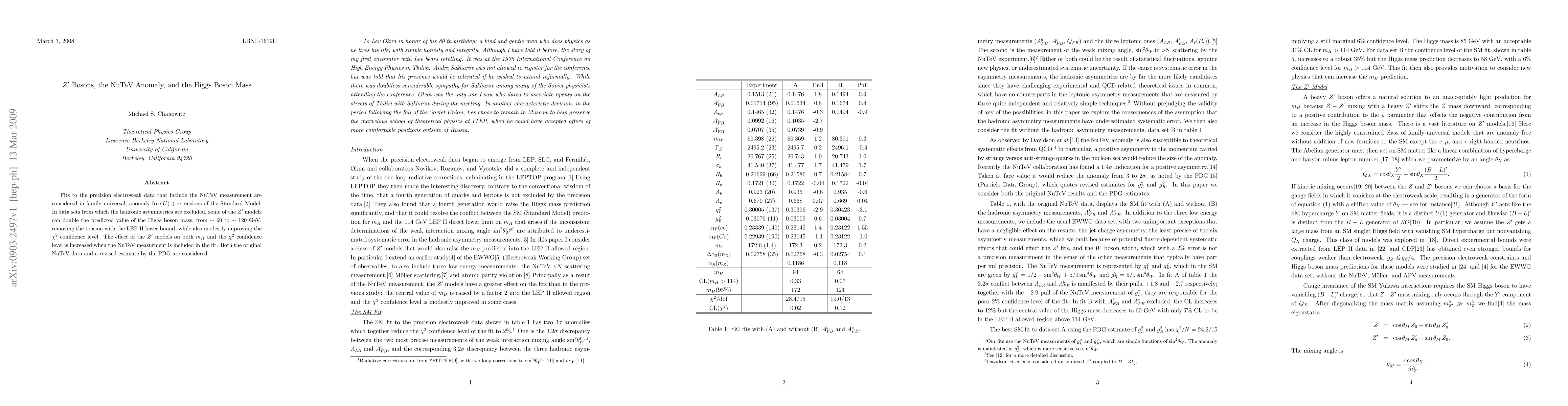 Fits to the precision electroweak data that include the NuTeV measurement are considered in family universal, anomaly free U(1) extensions of the Standard Model. In data sets from which the hadronic asymmetries are excluded, some of the Z' models can double the predicted value of the Higgs boson mass, from ~ 60 to ~ 120 GeV, removing the tension with the LEP II lower bound, while also modestly improving the chi-square confidence level. The effect of the Z' models on both the Higgs boson mass and the chi-square confidence level is increased when the NuTeV measurment is included in the fit. Both the original NuTeV data and a revised estimate by the PDG are considered.