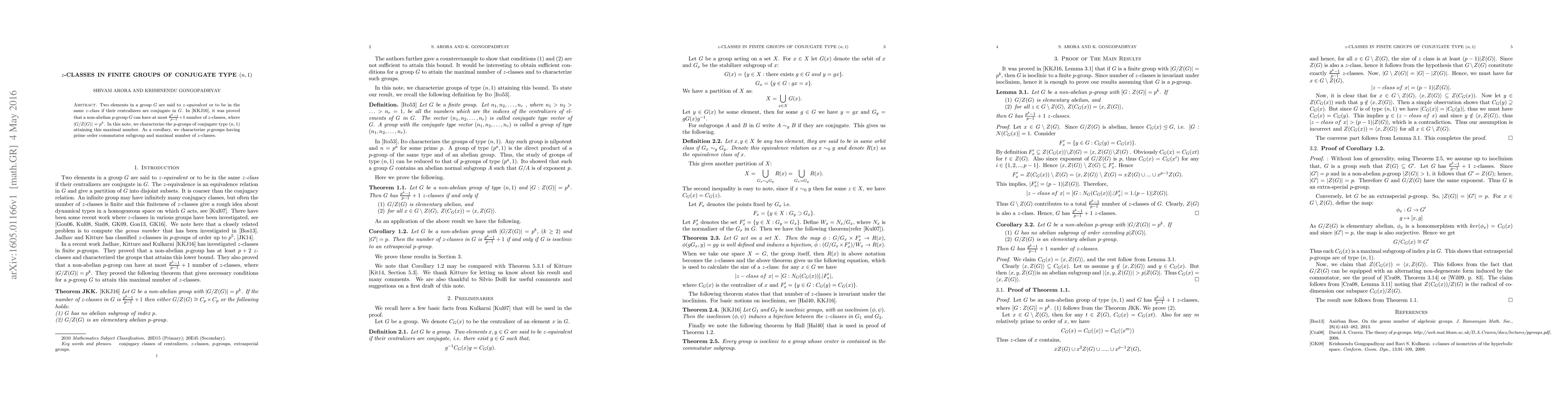 This research paper characterizes p-groups of conjugate type (n,1) that attain the maximal number of z-classes, which is proven to be |G/Z(G)| = p^k for a non-abelian p-group G.