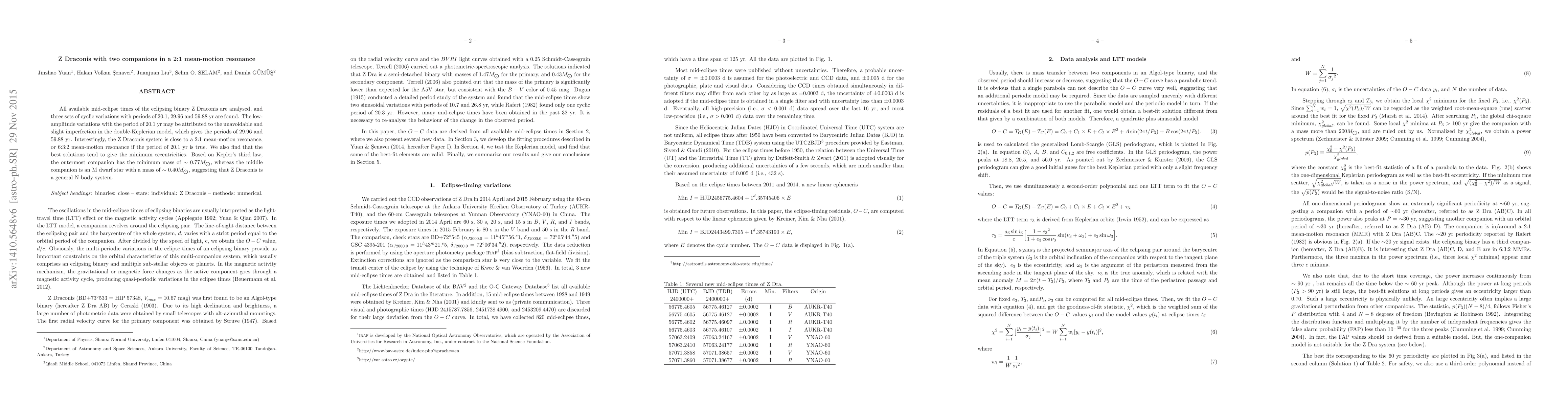 This paper analyzes Z Draconis's mid-eclipse times, revealing cyclic variations and a near 2:1 mean-motion resonance, suggesting an N-body system with three celestial bodies, including an M dwarf and a companion with minimum masses of 0.40 and 0.77 solar masses respectively.