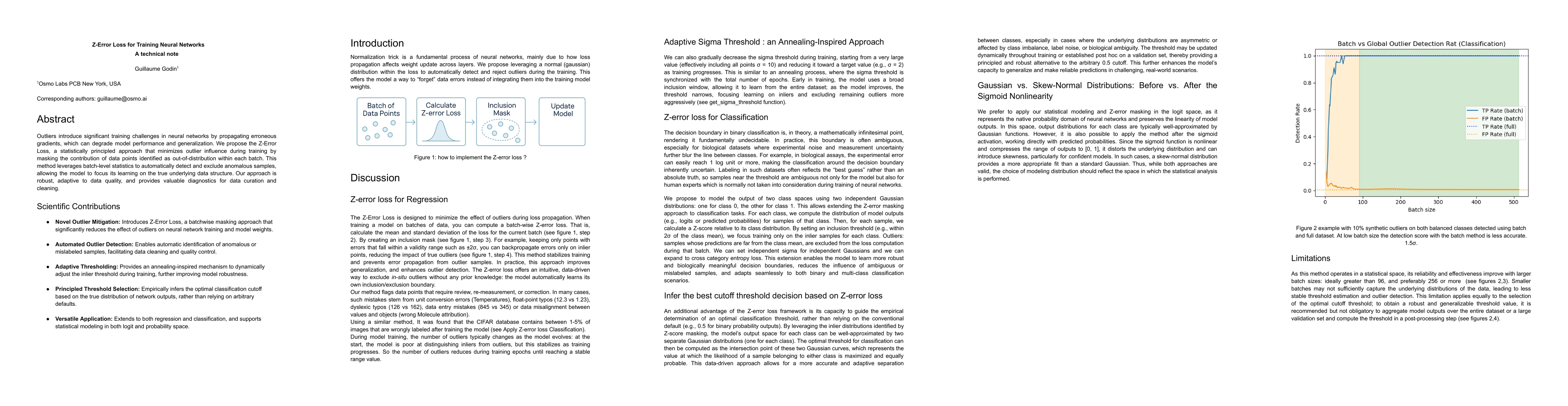 The research proposes the Z-Error Loss, a method that masks outlier contributions in batches using batch-level statistics to detect anomalous samples, enabling the model to concentrate on the genuine data structure.
